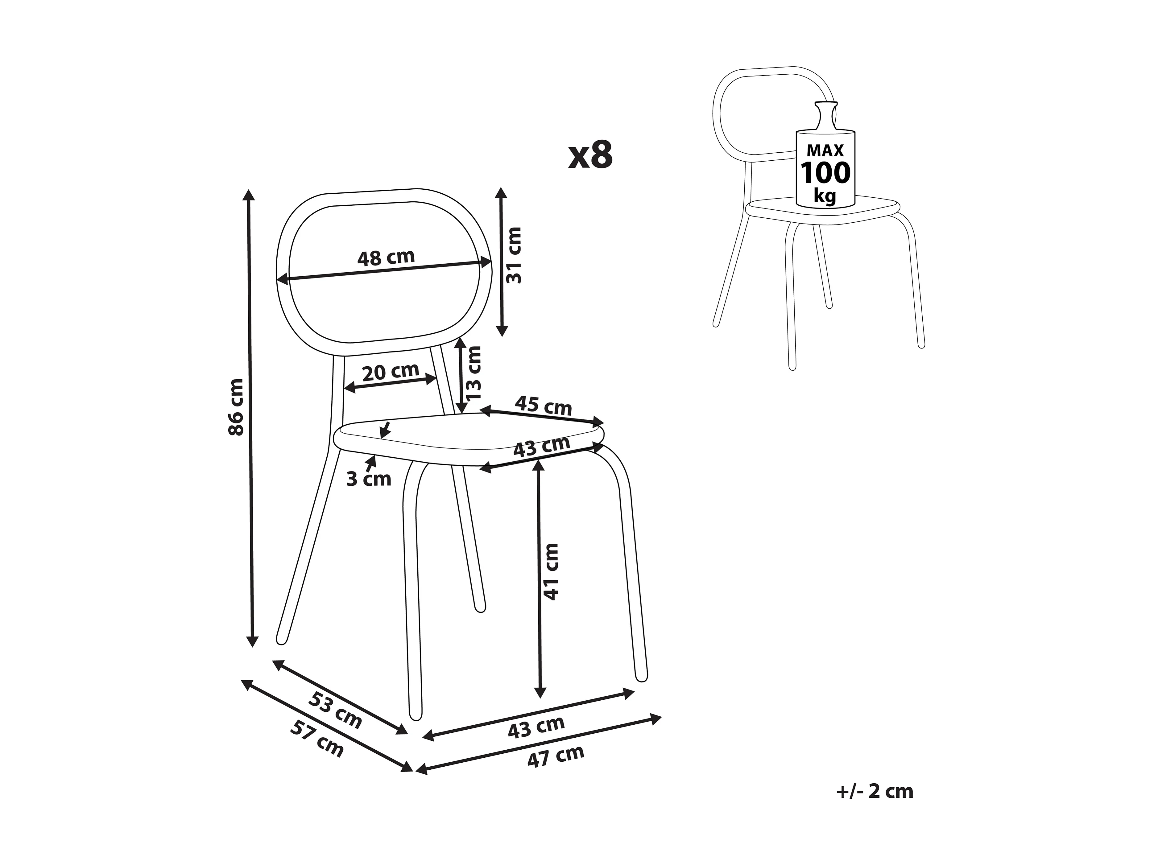 Conjunto de 8 cadeiras PRATELLO Natural
