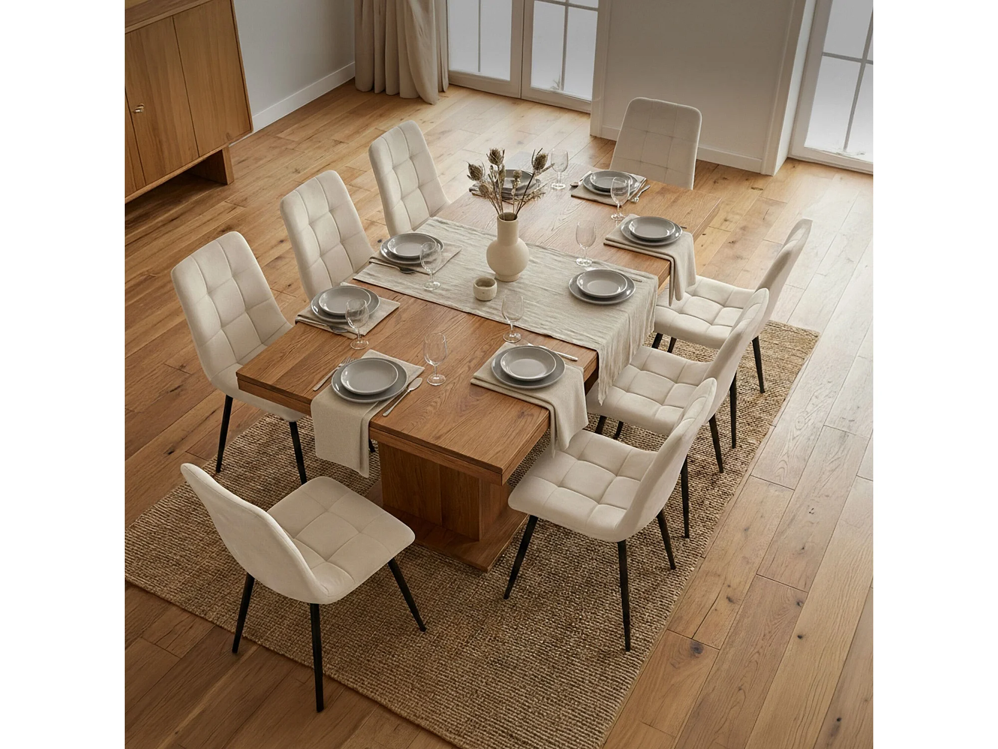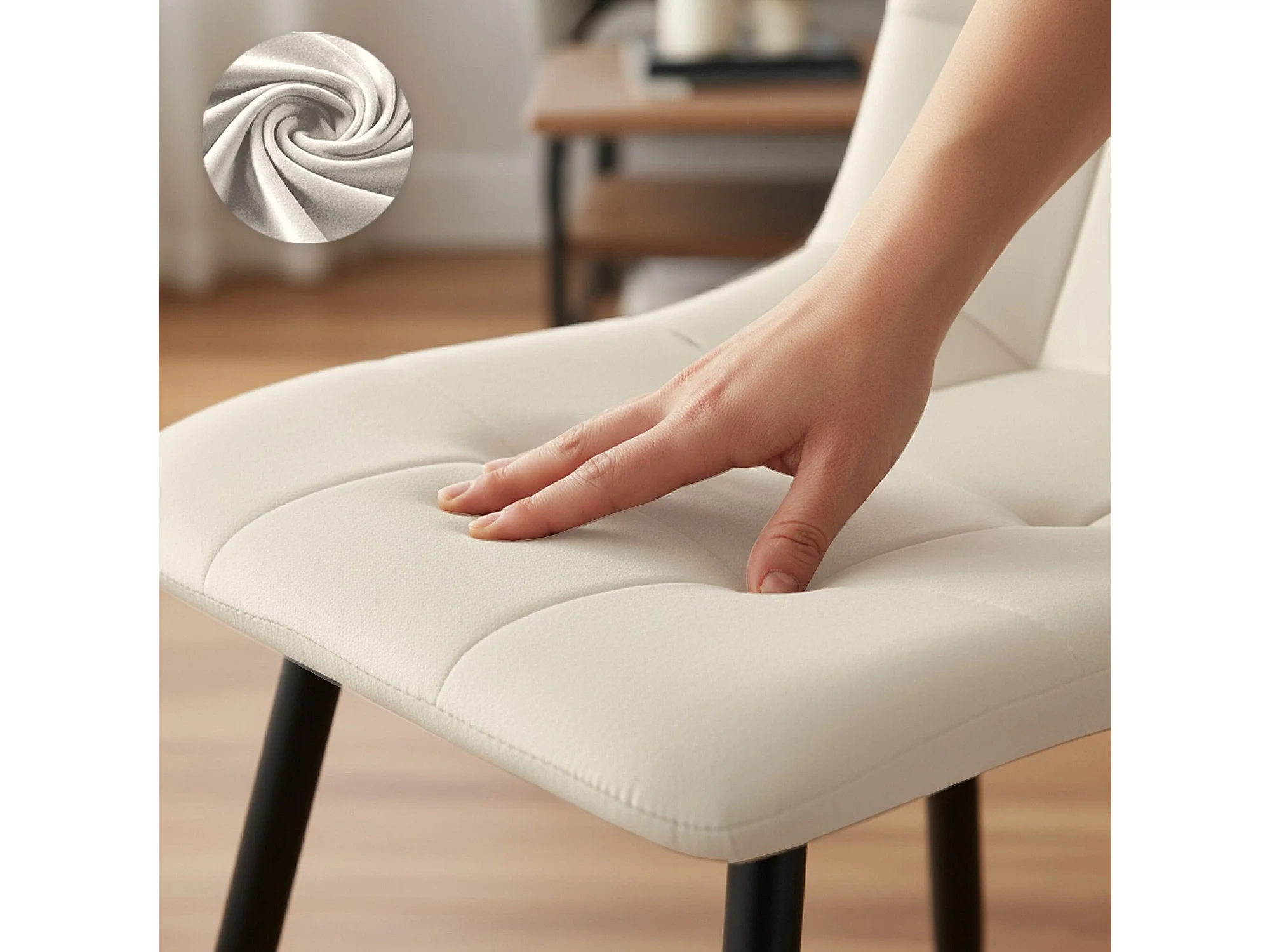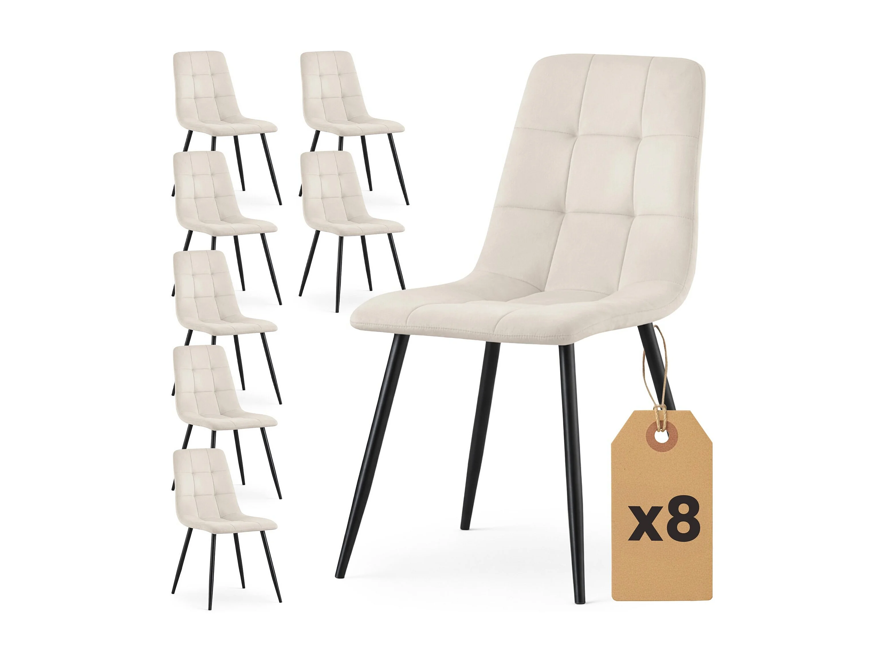 Conjunto de 8 Cadeiras estofadas NERO Bege com pernas pretas