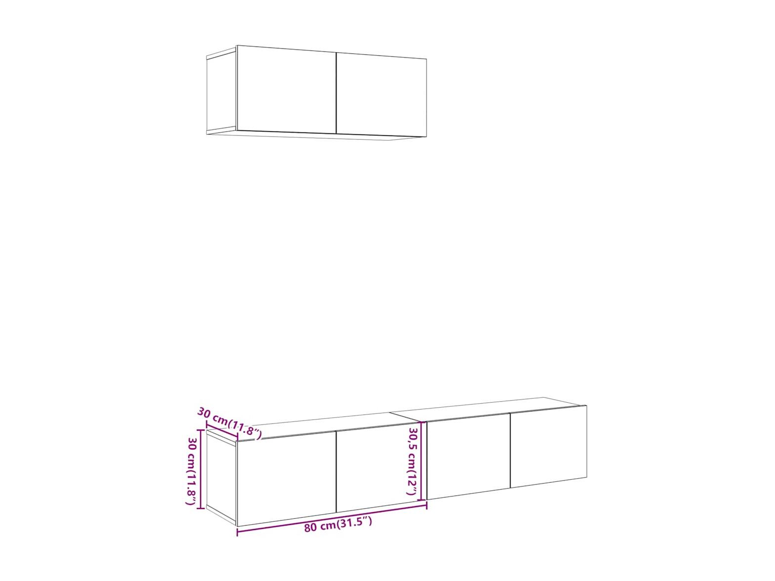 Gabinete para TV 2 peças Carvalho Artesanal 80 x 30 x 30 cm