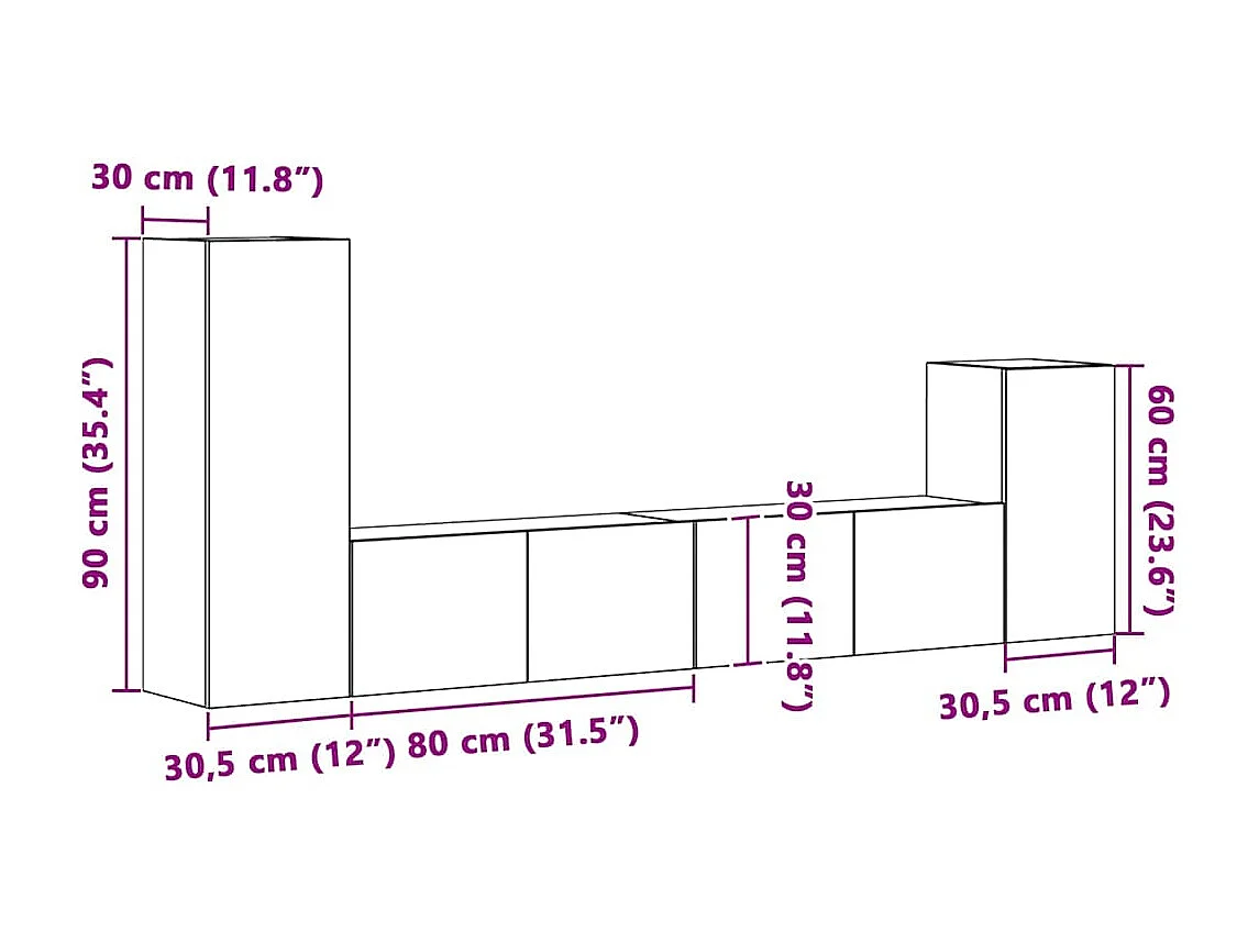 Conjunto de armário TV 4 peças montado na parede madeira velha