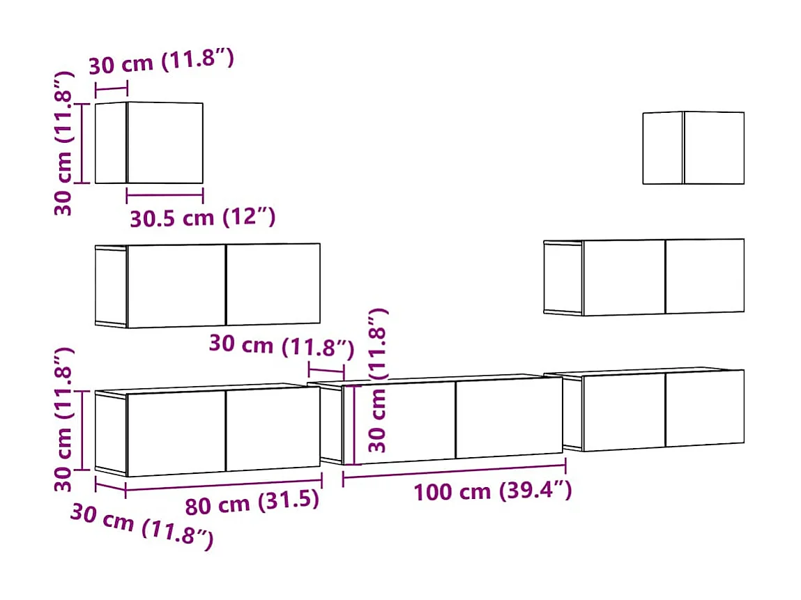 Conjunto de armário TV 7 peças montado na parede madeira antiga