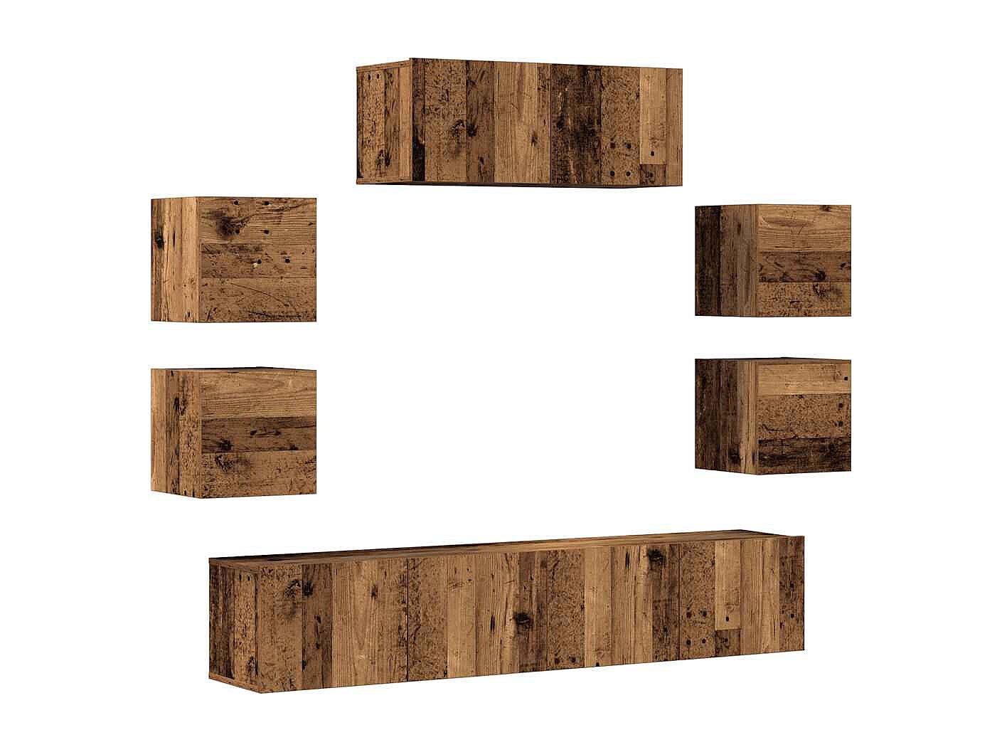 Conjunto de armário TV 8 peças montado na parede madeira velha