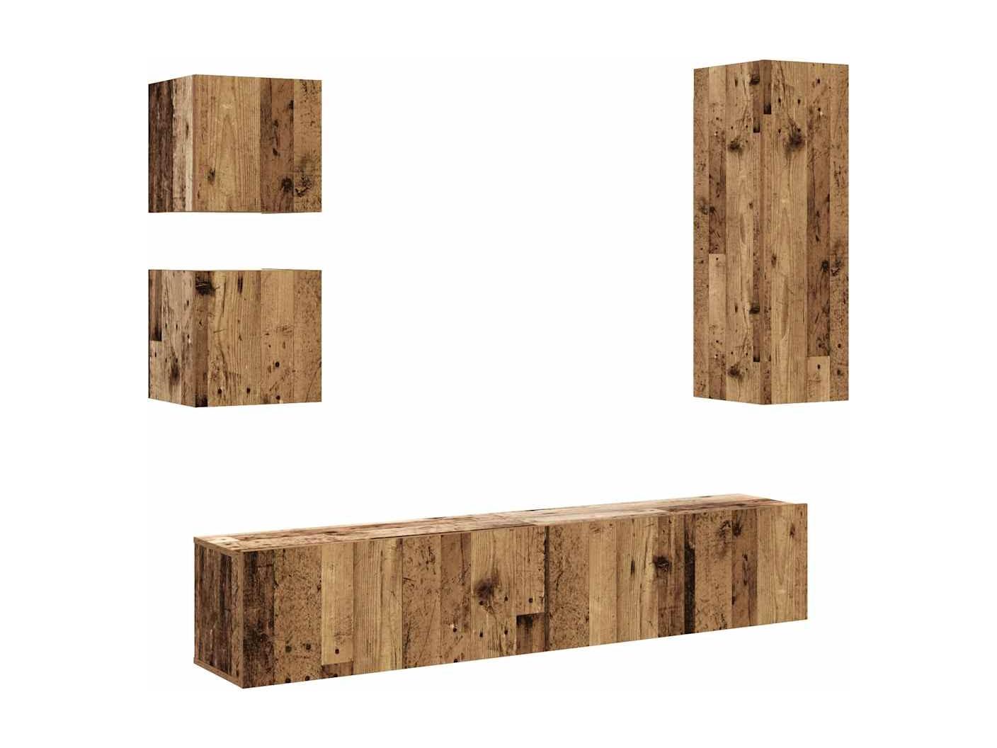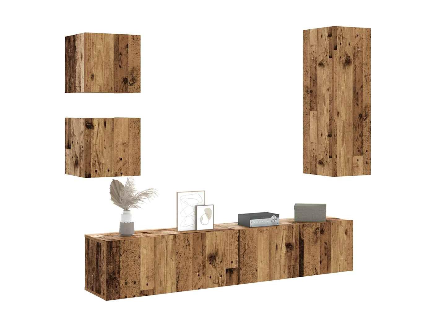 Conjunto de armário TV de parede 5 peças madeira madeira velha