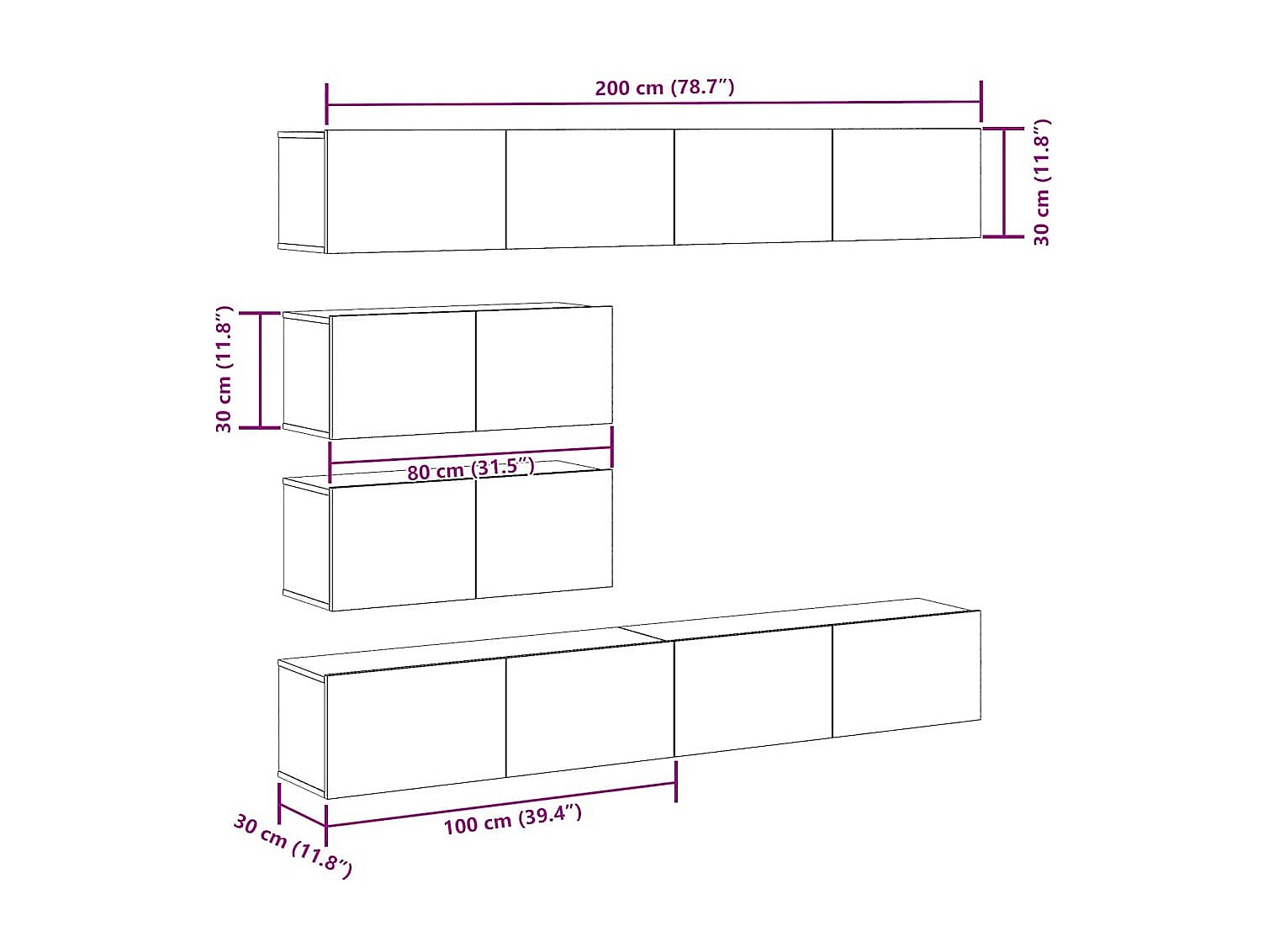 Conjunto de armário TV 7 peças montado na parede madeira antiga