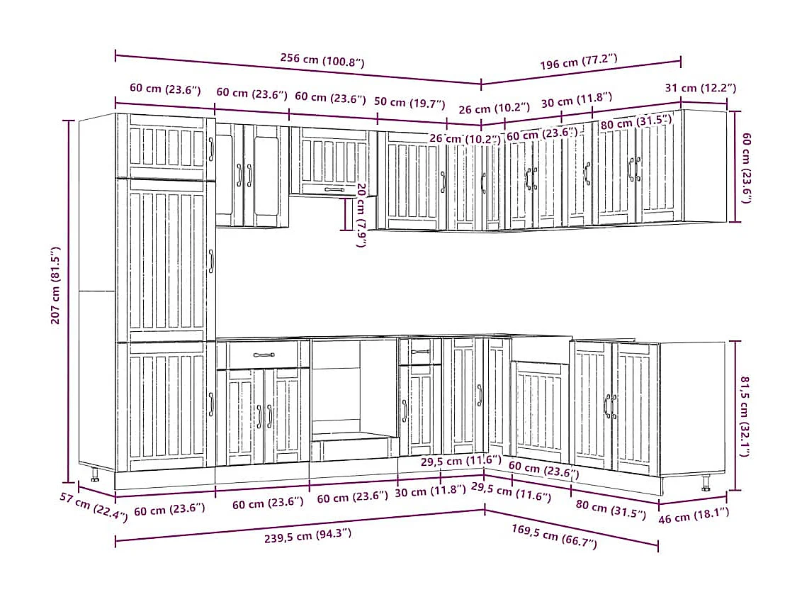 Conjunto de armários de cozinha Lucca de 14 peças em madeira projetada