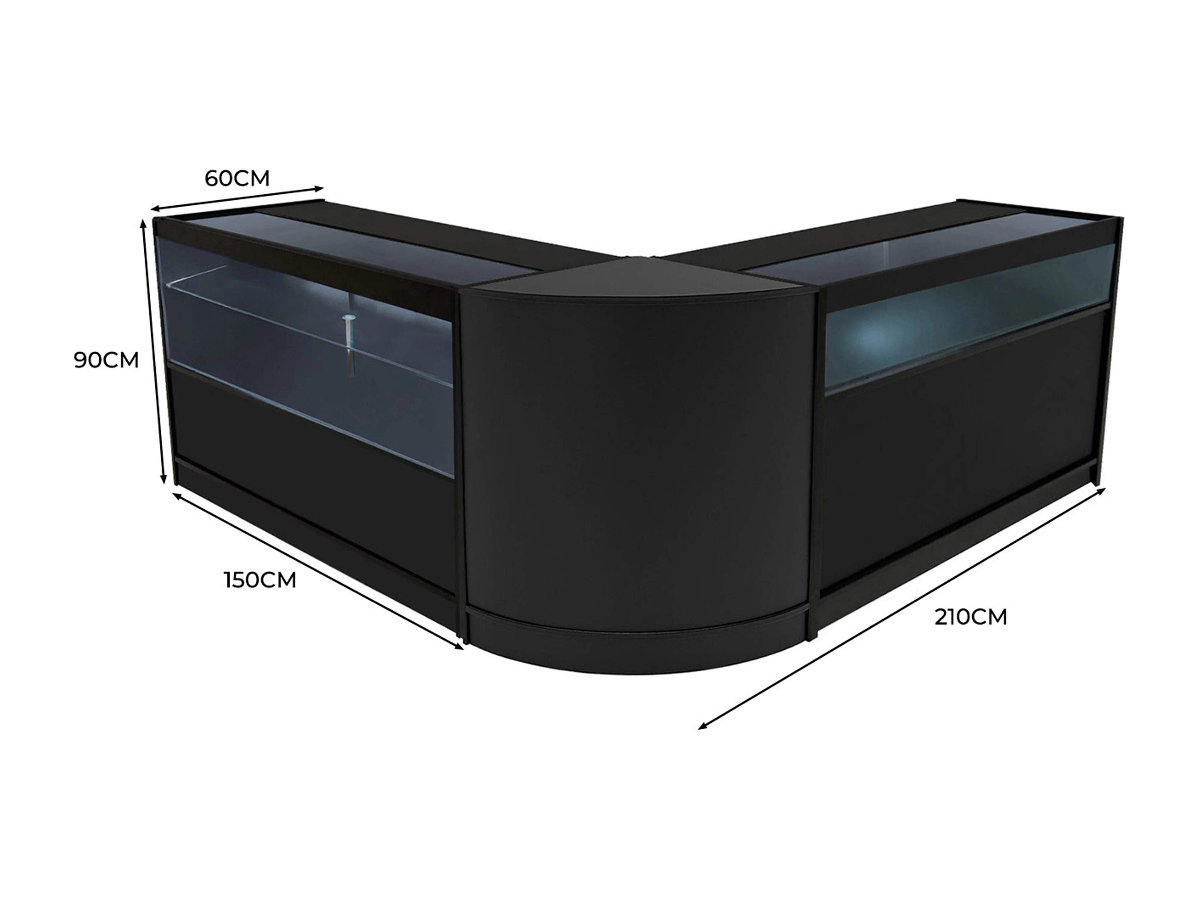 Conjunto de Balcões Comerciais com Luz LED "ADONIS" CM60 + B1500 + C1500 – cor Preto