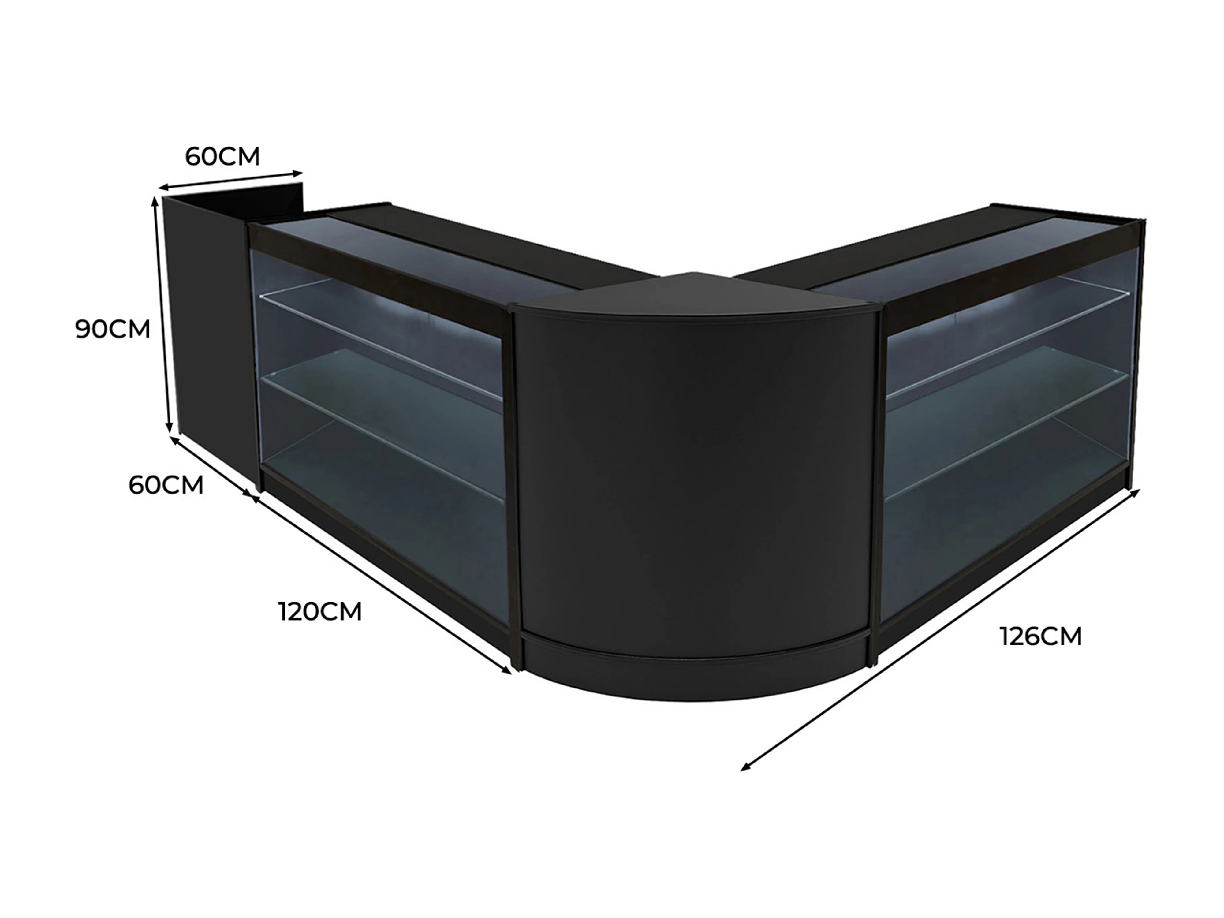 Conjunto de Balcões Comerciais com Luz LED "SAGITTARIUS " LM60 + 2xB1200 + TB60 – cor Preto