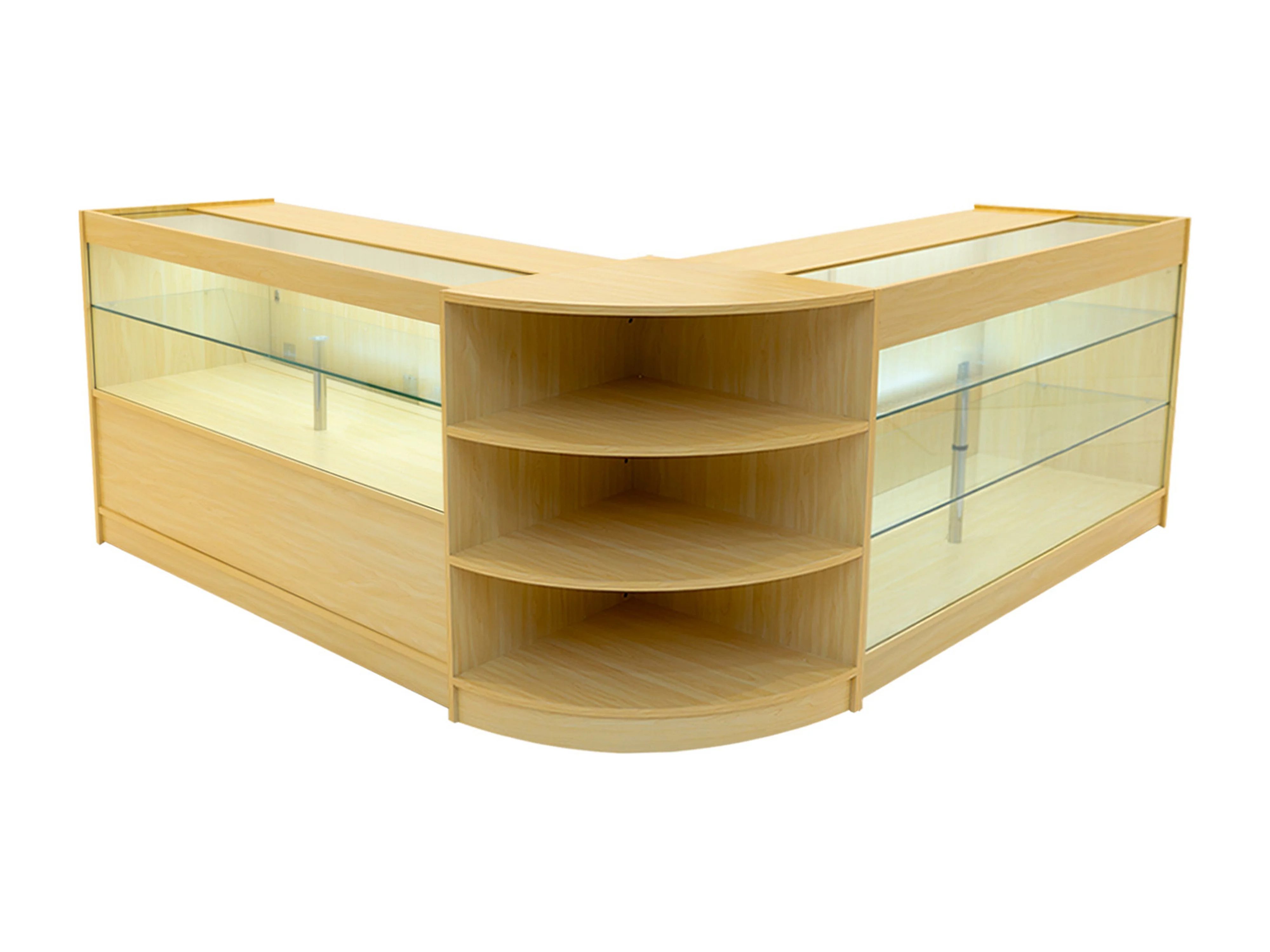 Conjunto de Balcões Comerciais com Luz LED "CALLIOPE" LM60 + K1500 + C1500 – cor Maple