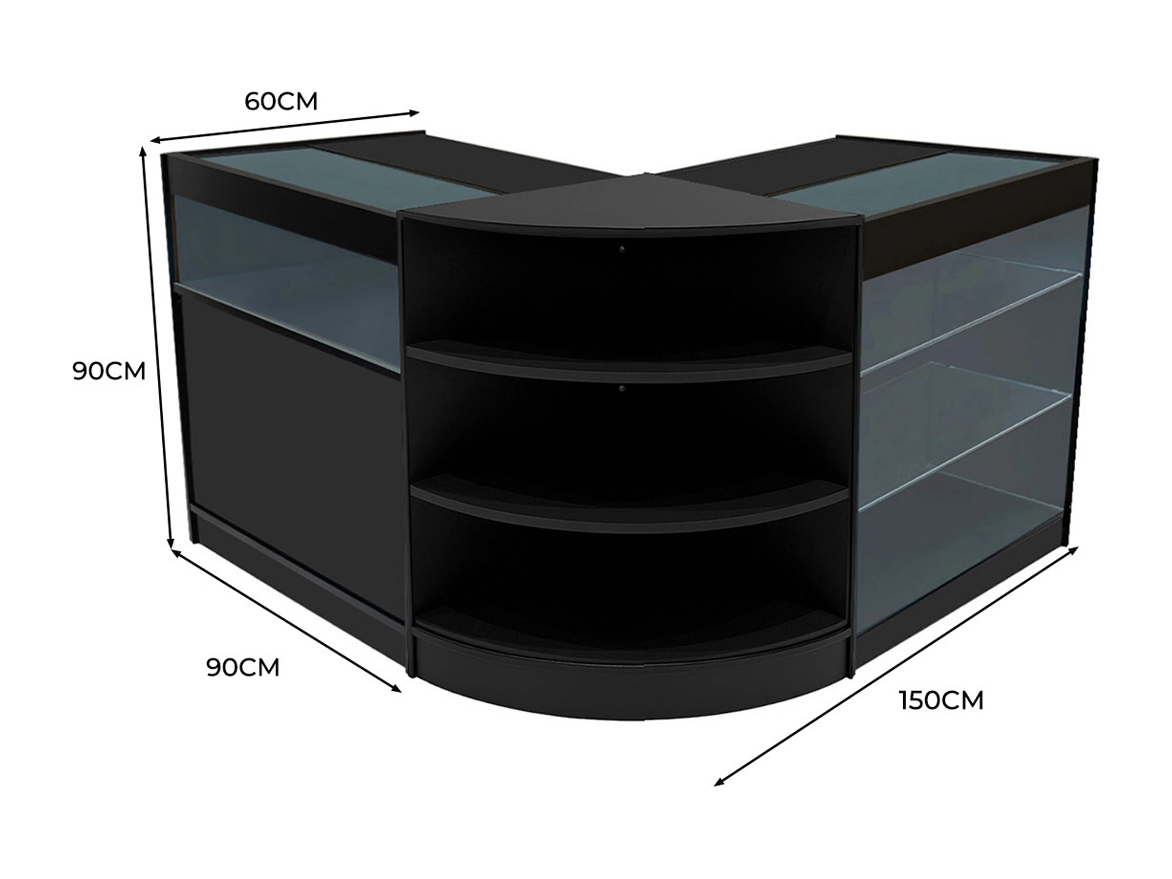 Conjunto de Balcões Comerciais com Luz LED "SAGITTARIUS " LM60 + 2xB900 + TB60 – cor Preto