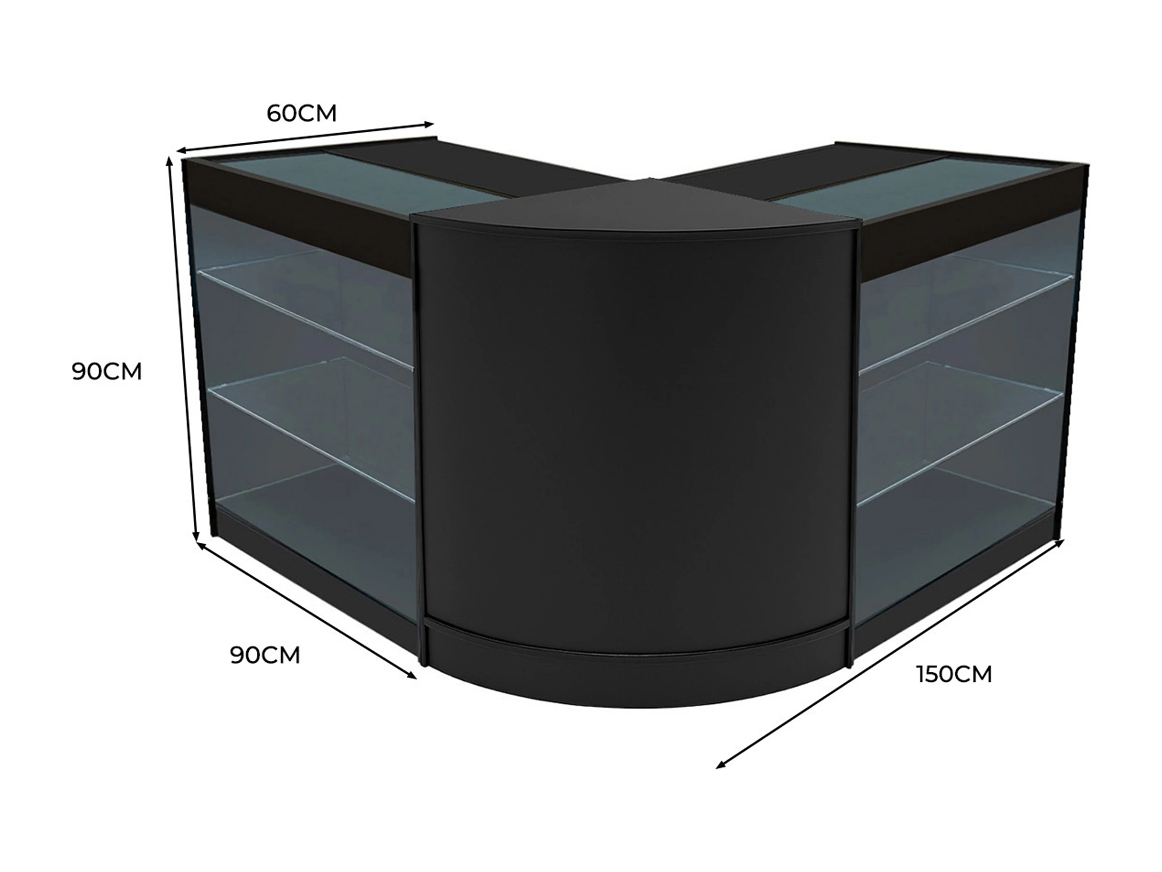 Conjunto de Balcões Comerciais com Luz LED "ADONIS" CM60 + B900 + C900 – cor Preto