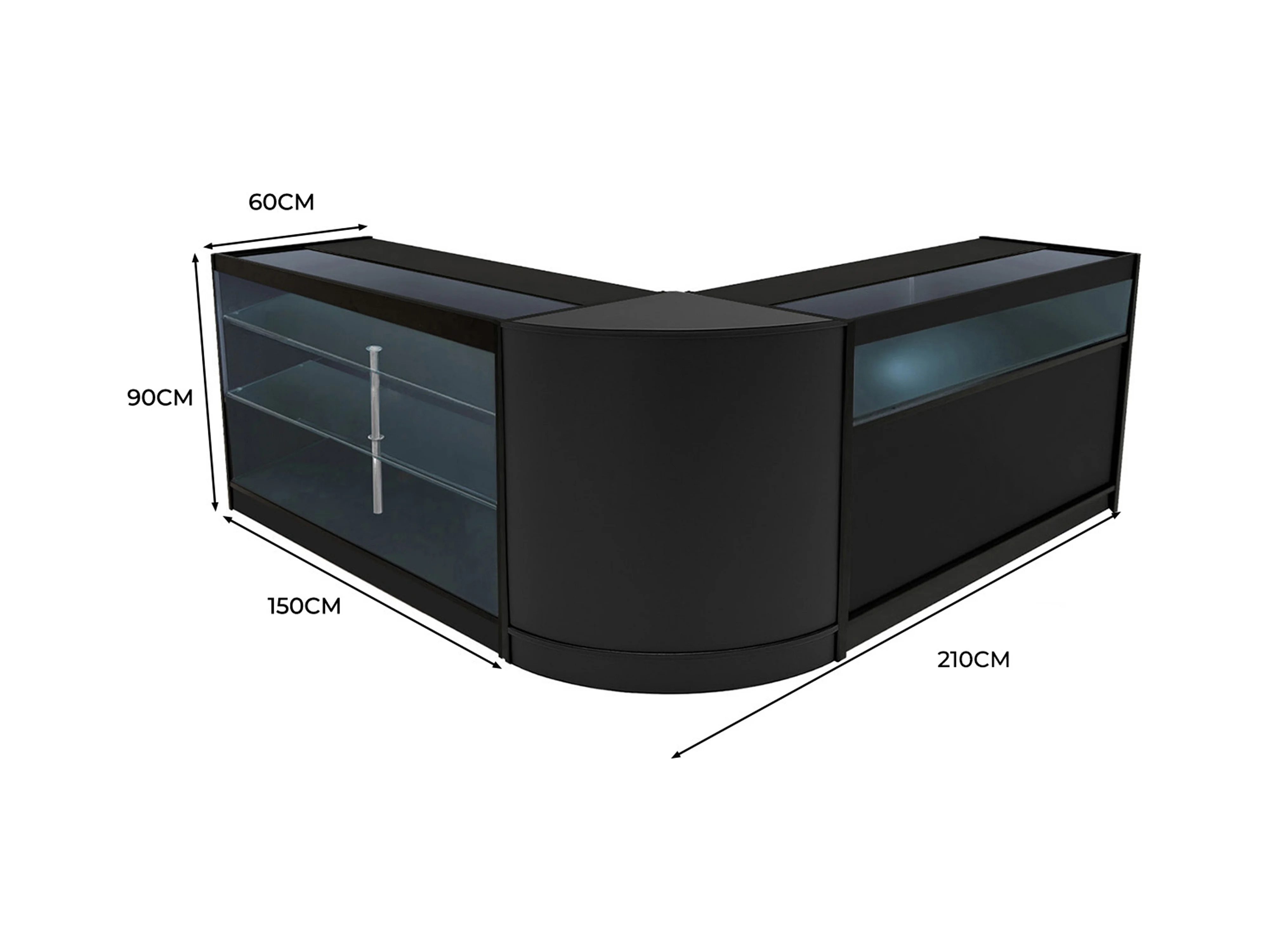 Conjunto de Balcões Comerciais com Luz LED "TRITON" CM60 + K1500 + B1500 – cor Preto