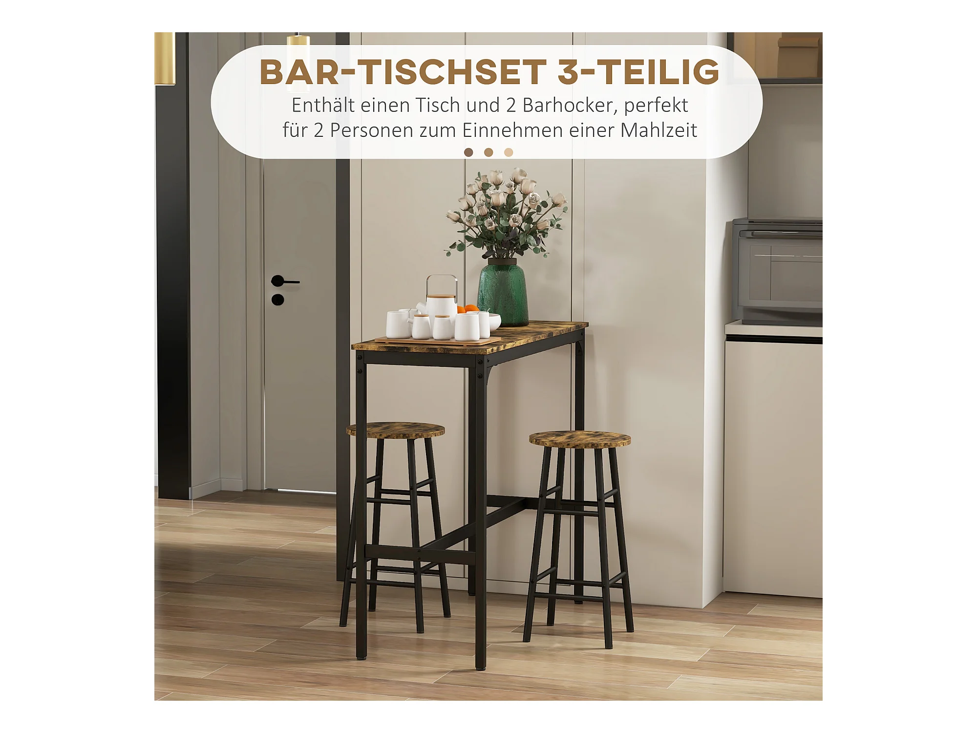Conjunto de bar de 3 peças com mesa de metal MDF e 2 bancos para cozinha e sala de estar em marrom rústico