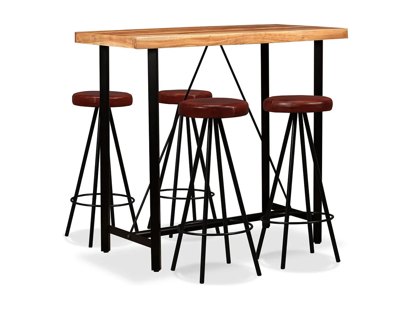 Conjunto de barras com 5 peças Madeira de acácia maciça e couro genuíno