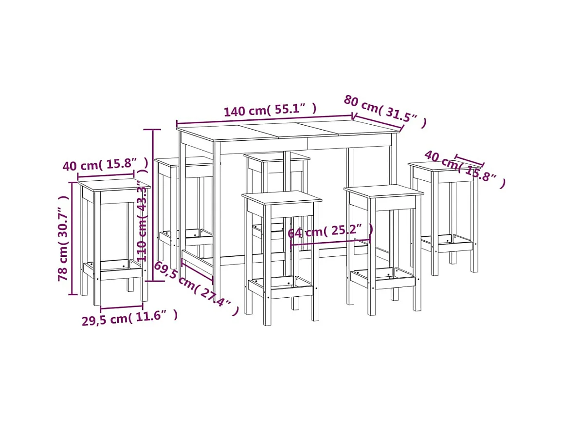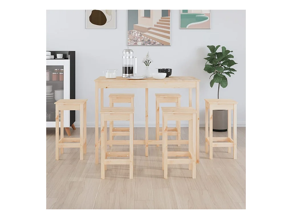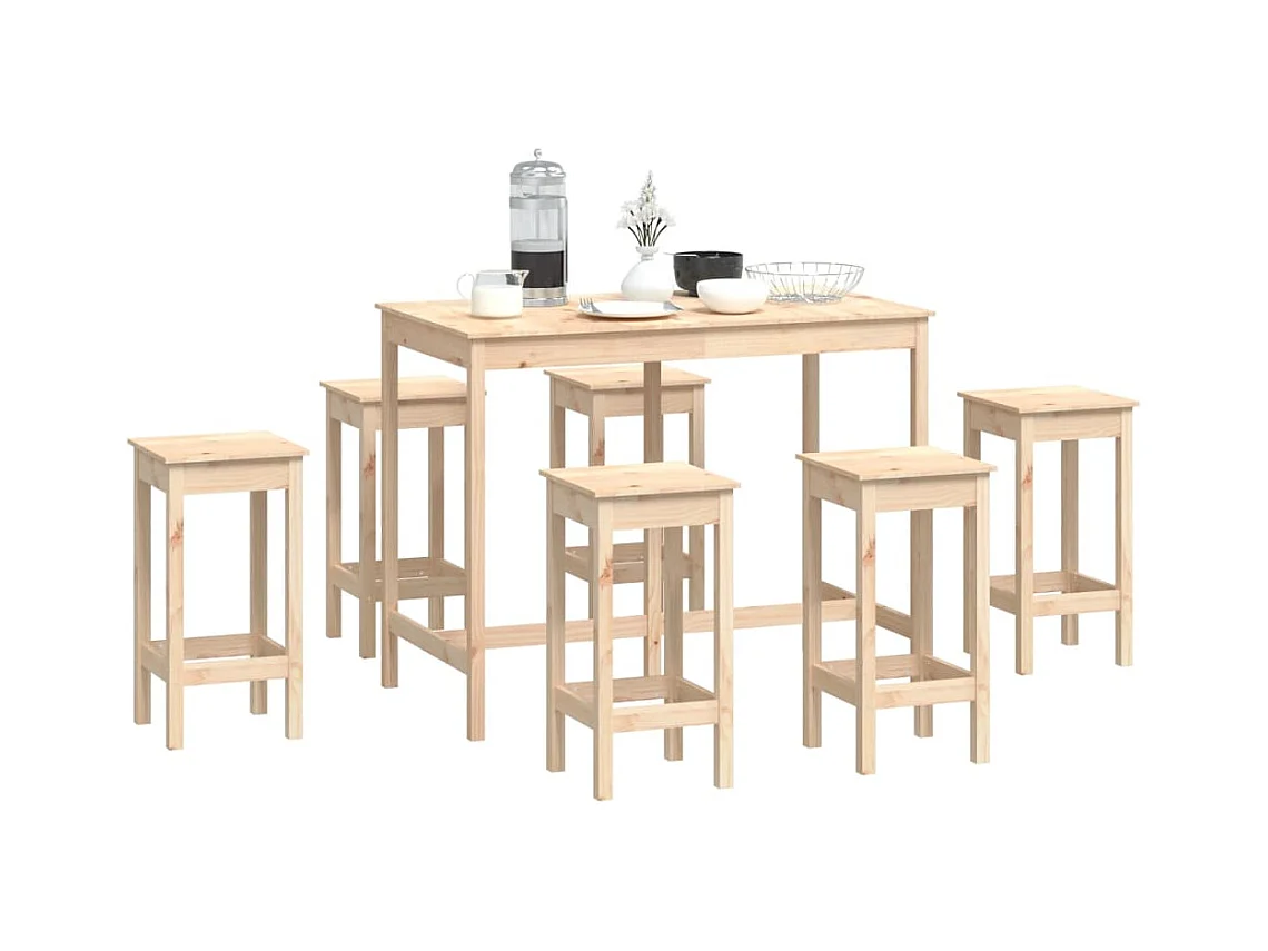 Conjunto de barras de 7 peças em madeira maciça de pinho