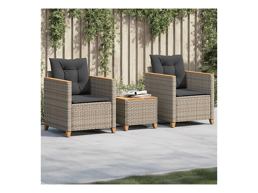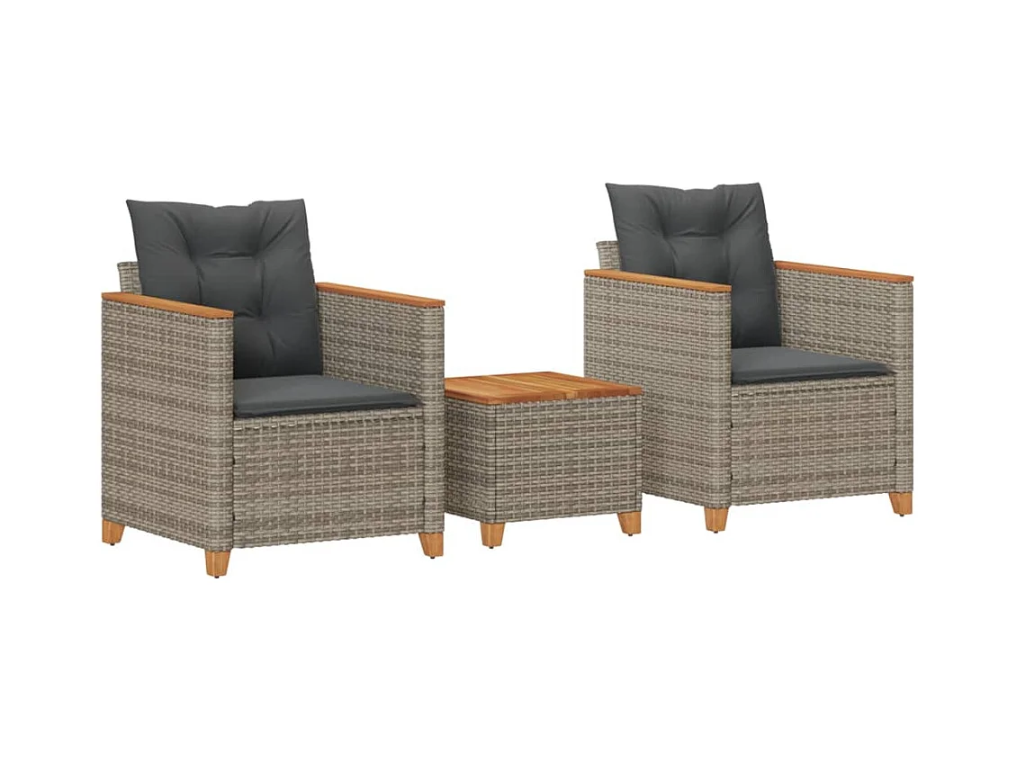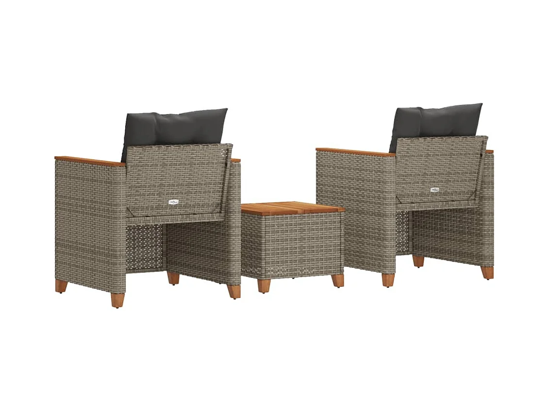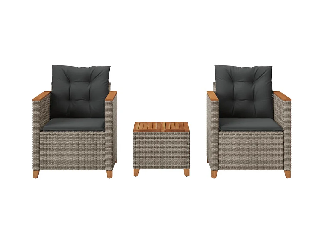Conjunto de bistrô com almofadões 3 pcs vime PE e acácia cinza PT929203