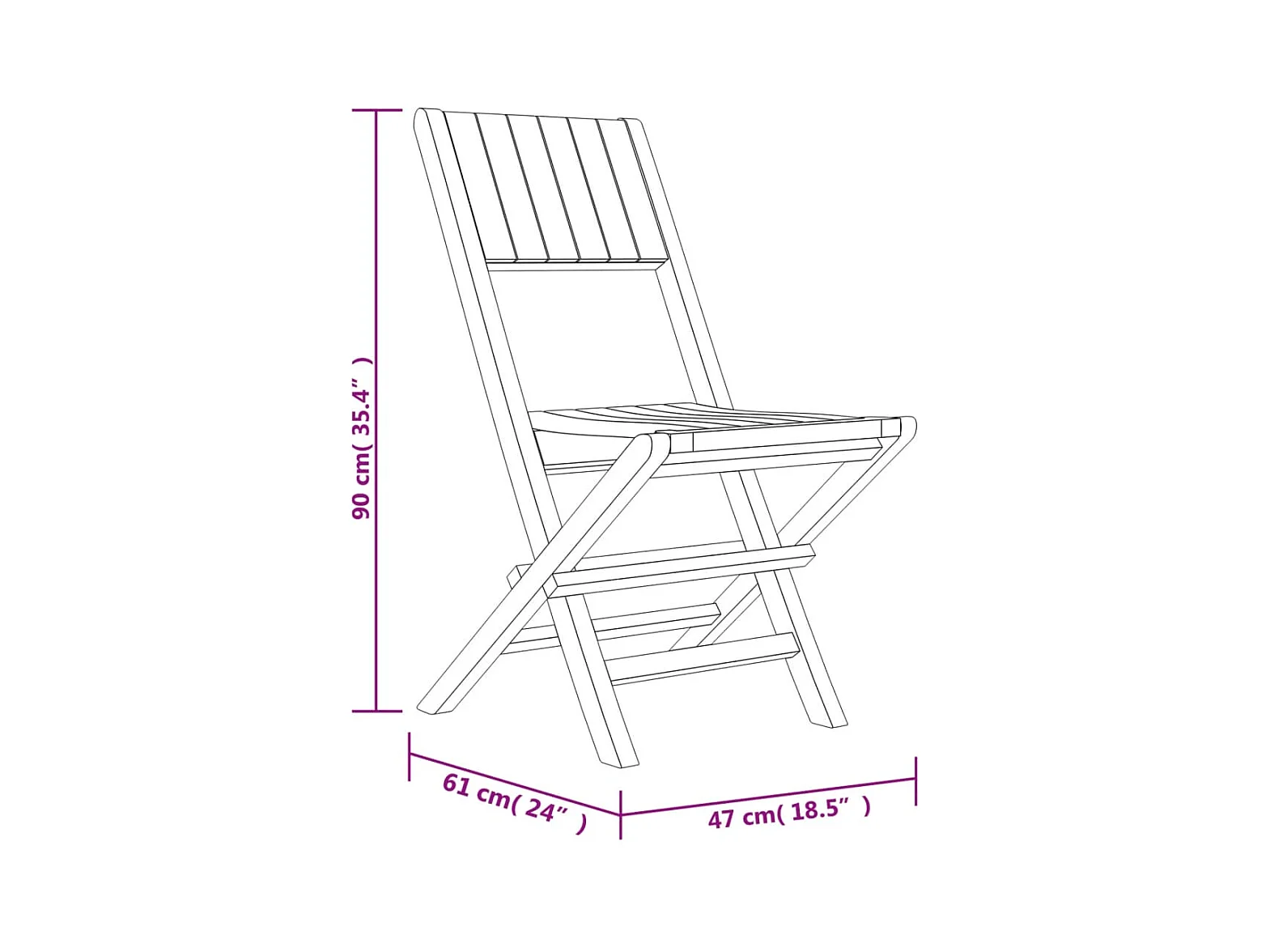 Conjunto de cadeiras dobráveis de jardim com 2 cadeiras de madeira maciça de teca 47x61x90cm