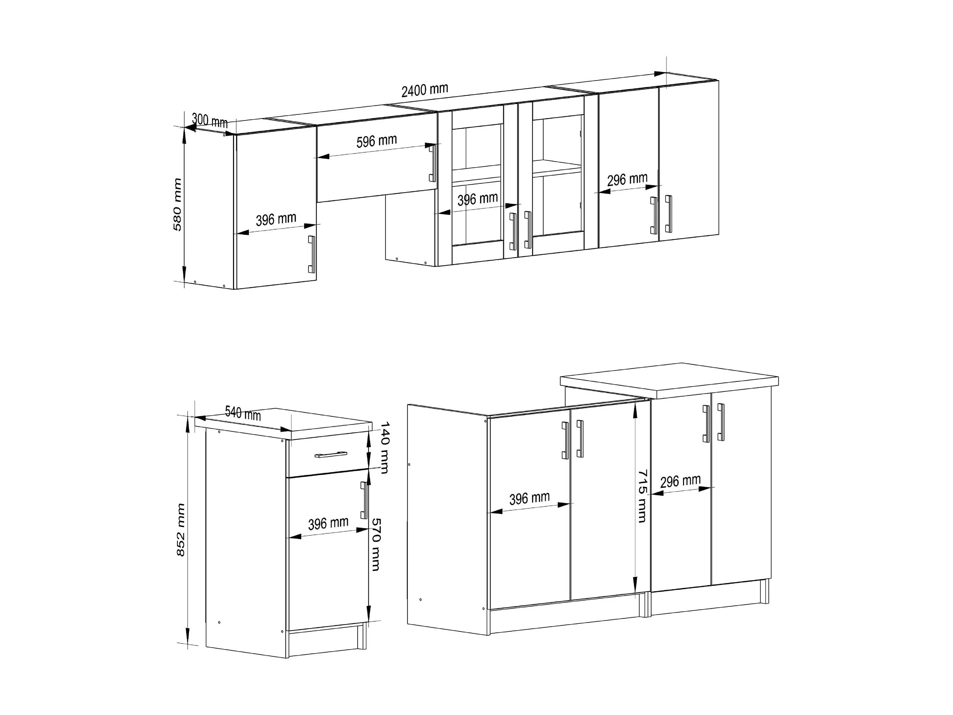 Conjunto de Cozinha com Vitrine Lima 2.4M - Branco / Carvalho Sonoma