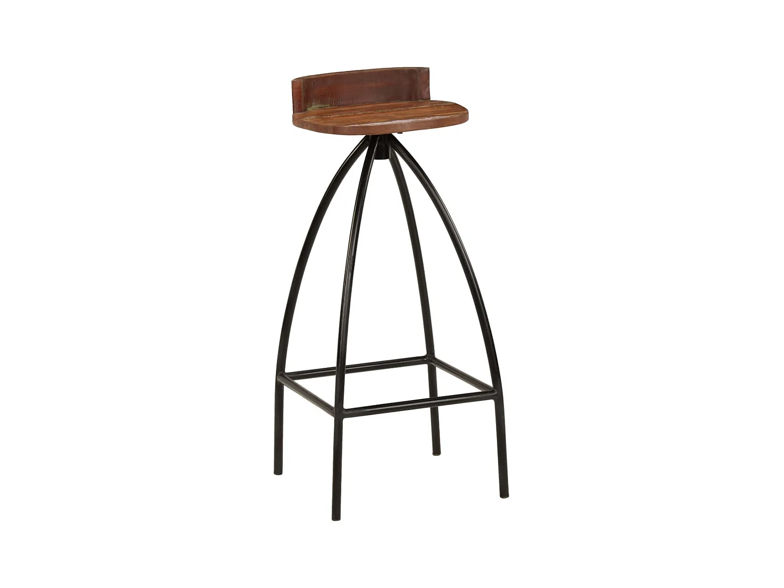 Conjunto de dois bancos de bar de design com assento em madeira maciça reciclada 1202174
