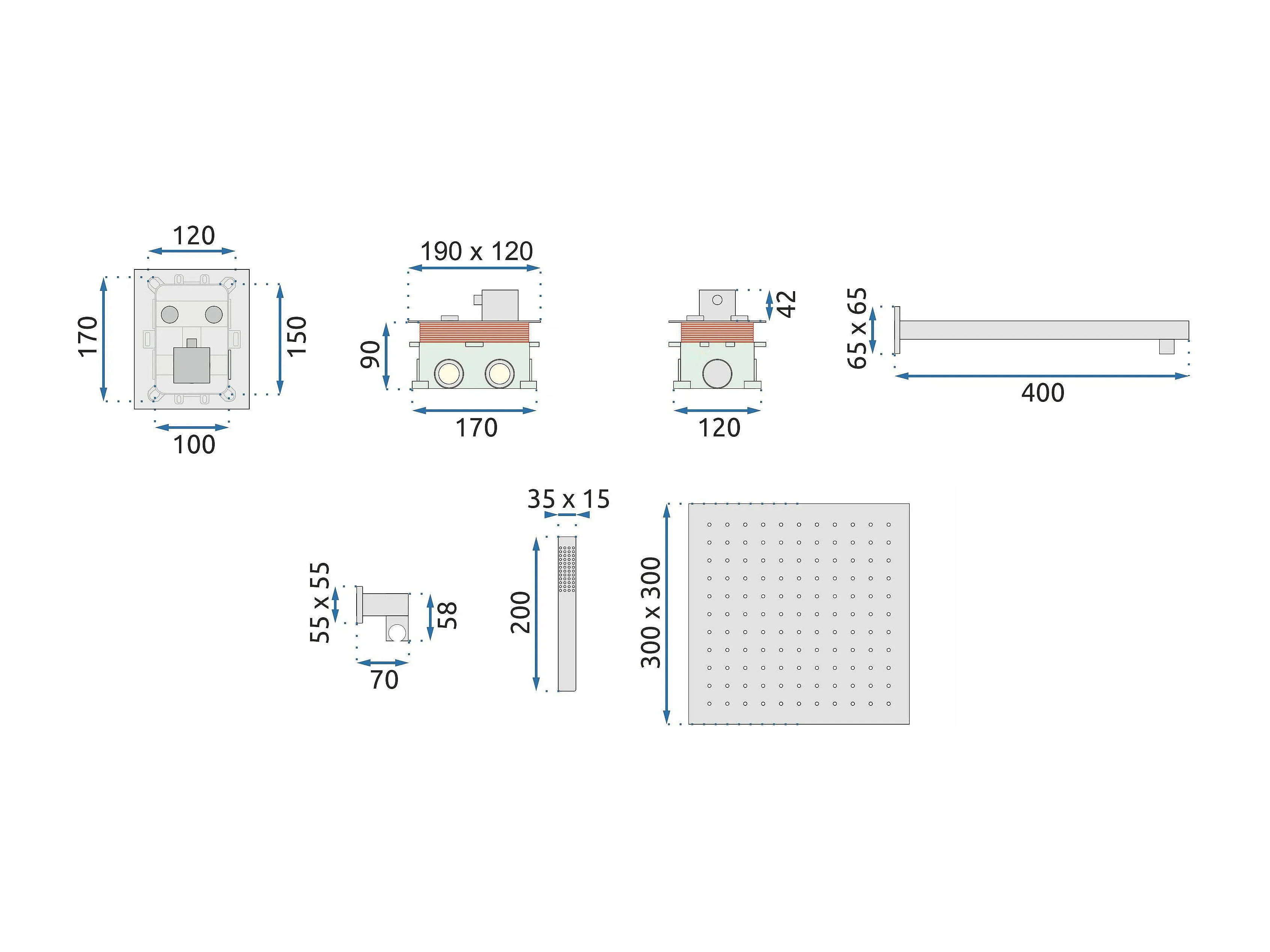 Cabeça de chuveiro quadrada em aço inoxidável 304 30x30 cm PT125724