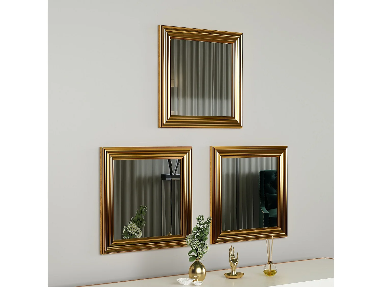 Conjunto de Espelhos Dourados 'Balle' - 3 Peças - Design Moderno 40x40x3cm