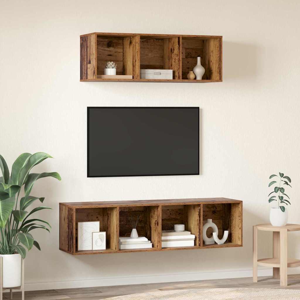 Conjunto de móvel de TV 4 peças Madeira antiga 37 x 37 x 142.5 cm