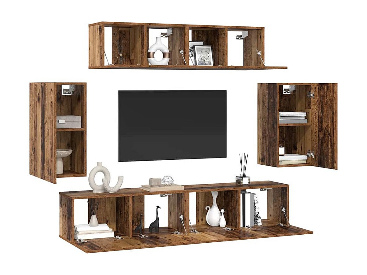 Conjunto de Estantes pra TV 6 peças Madeira antiga