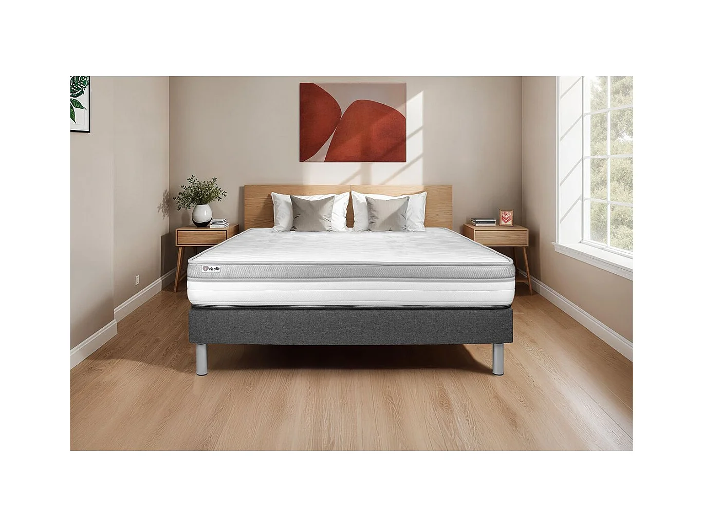 Conjunto de estrado gris + Colchão VITALIT VITAL ERGO ( 160 x 200 cm - Molas ensacadas e espuma viscoelástica )