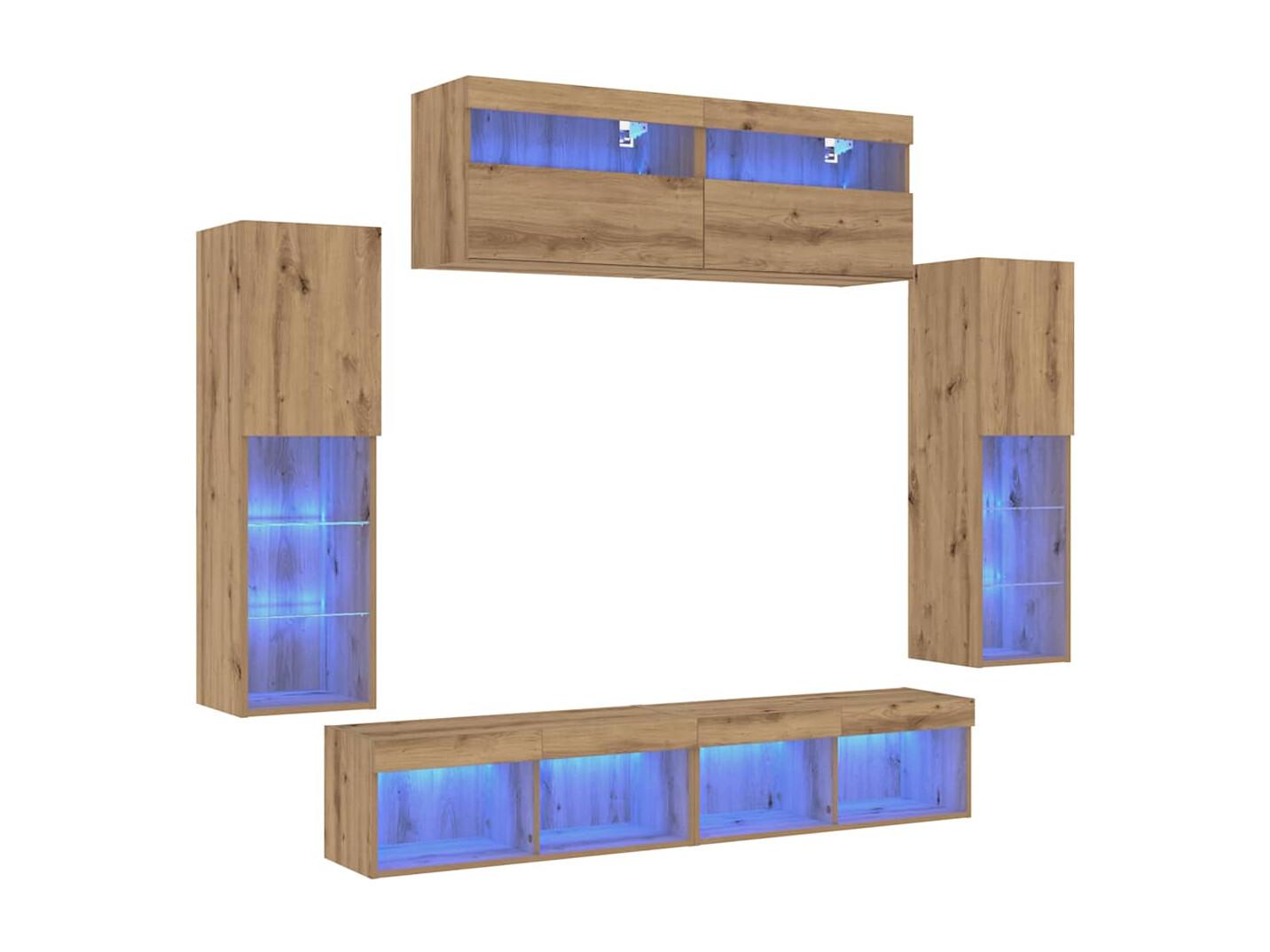 Conjunto de armário TV parede 8 peças madeira carvalho artisiano