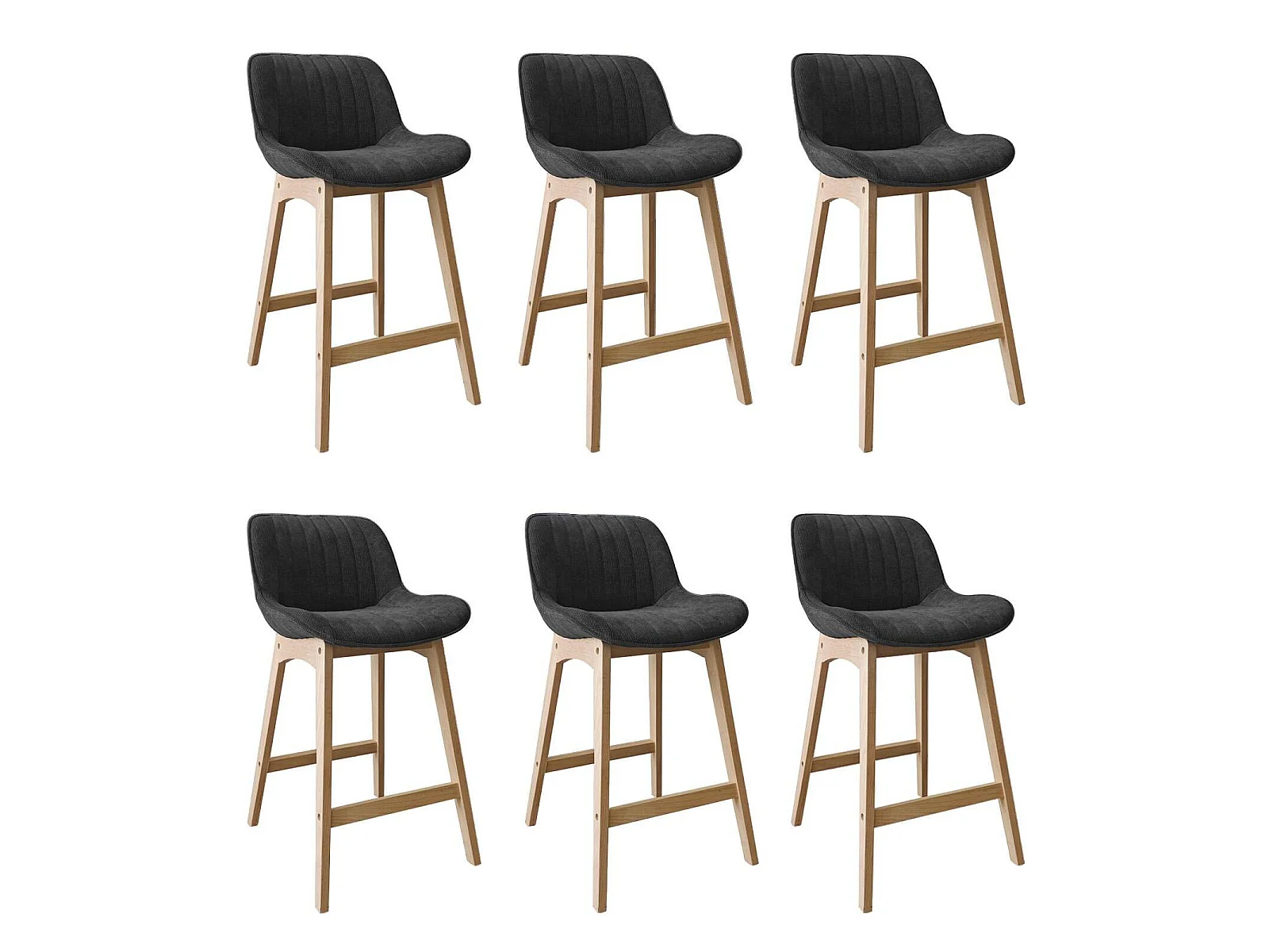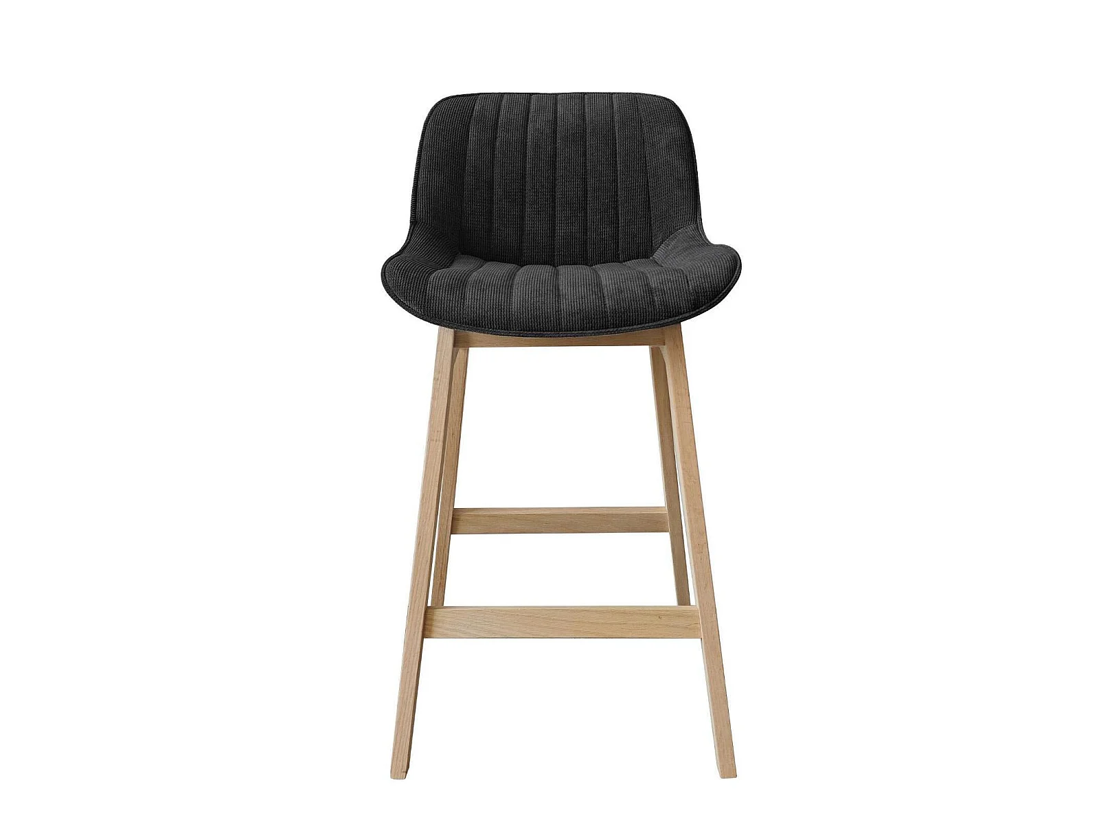 Conjunto de ilha e cadeiras de bar em carvalho NORDEN de 65 cm com assento em tecido de veludo cotelê