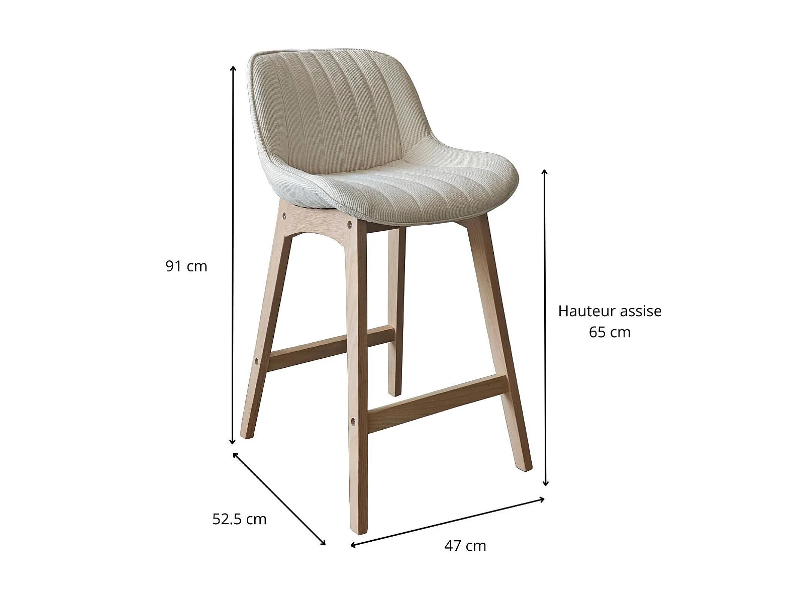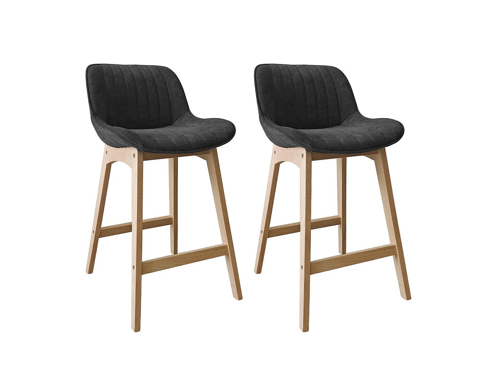 Conjunto de ilha e cadeiras de bar em carvalho NORDEN de 65 cm com assento em tecido de veludo cotelê