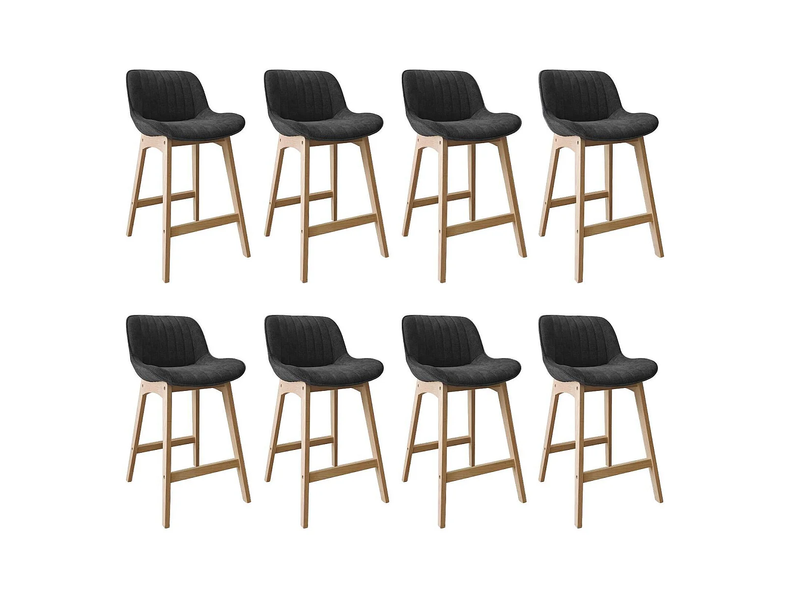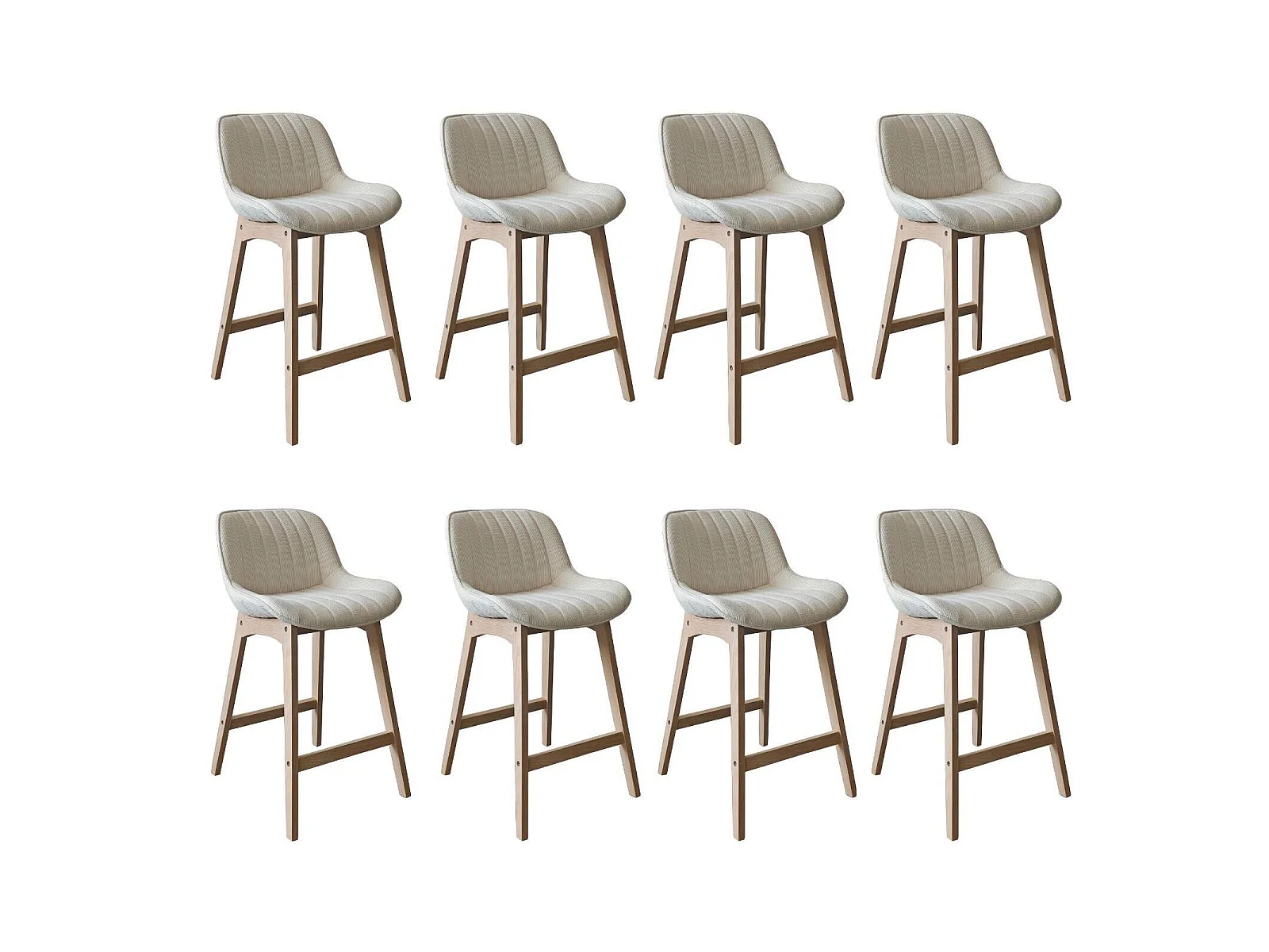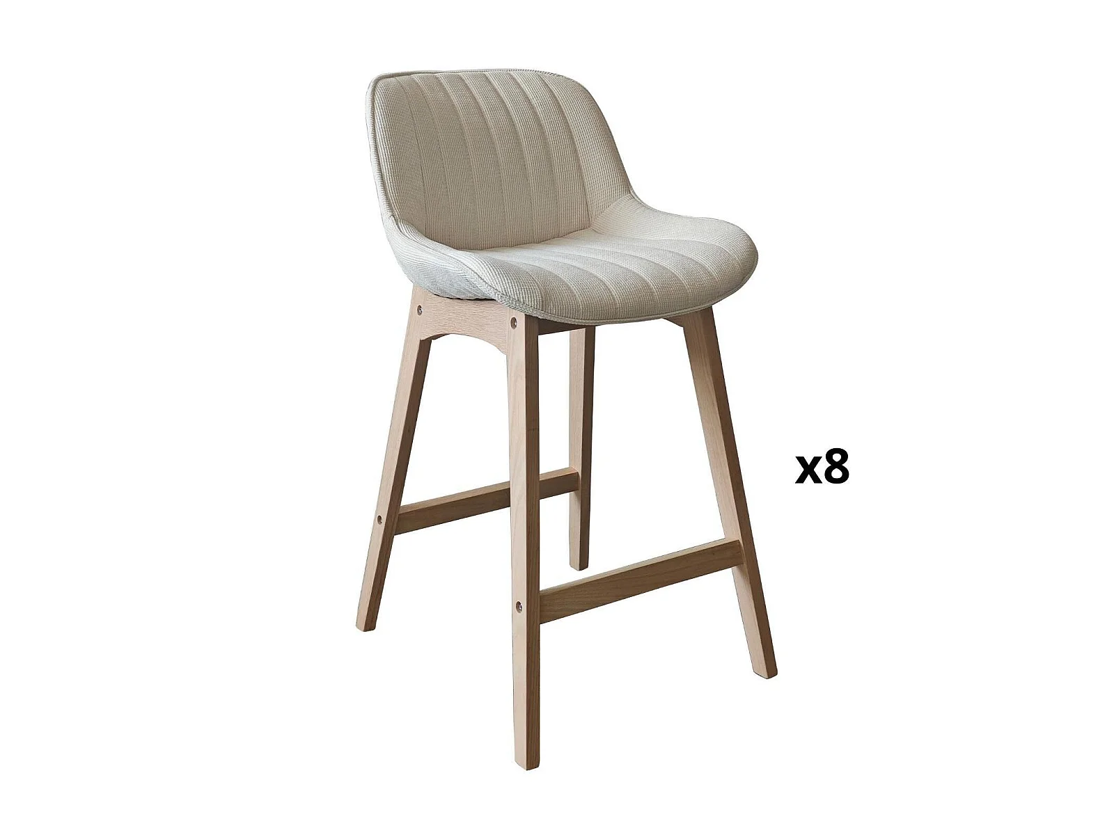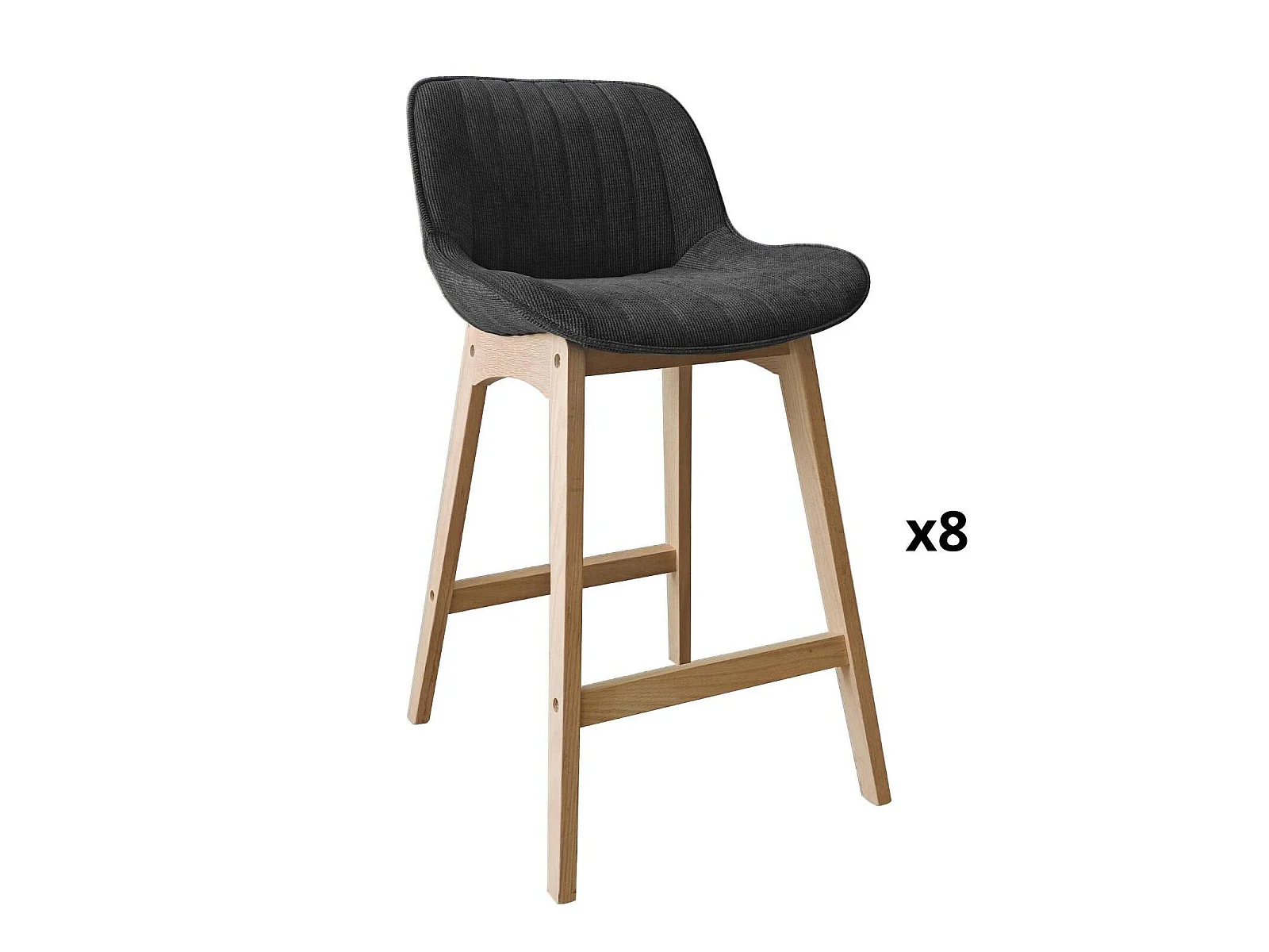 Conjunto de ilha e cadeiras de bar em carvalho NORDEN de 65 cm com assento em tecido de veludo cotelê