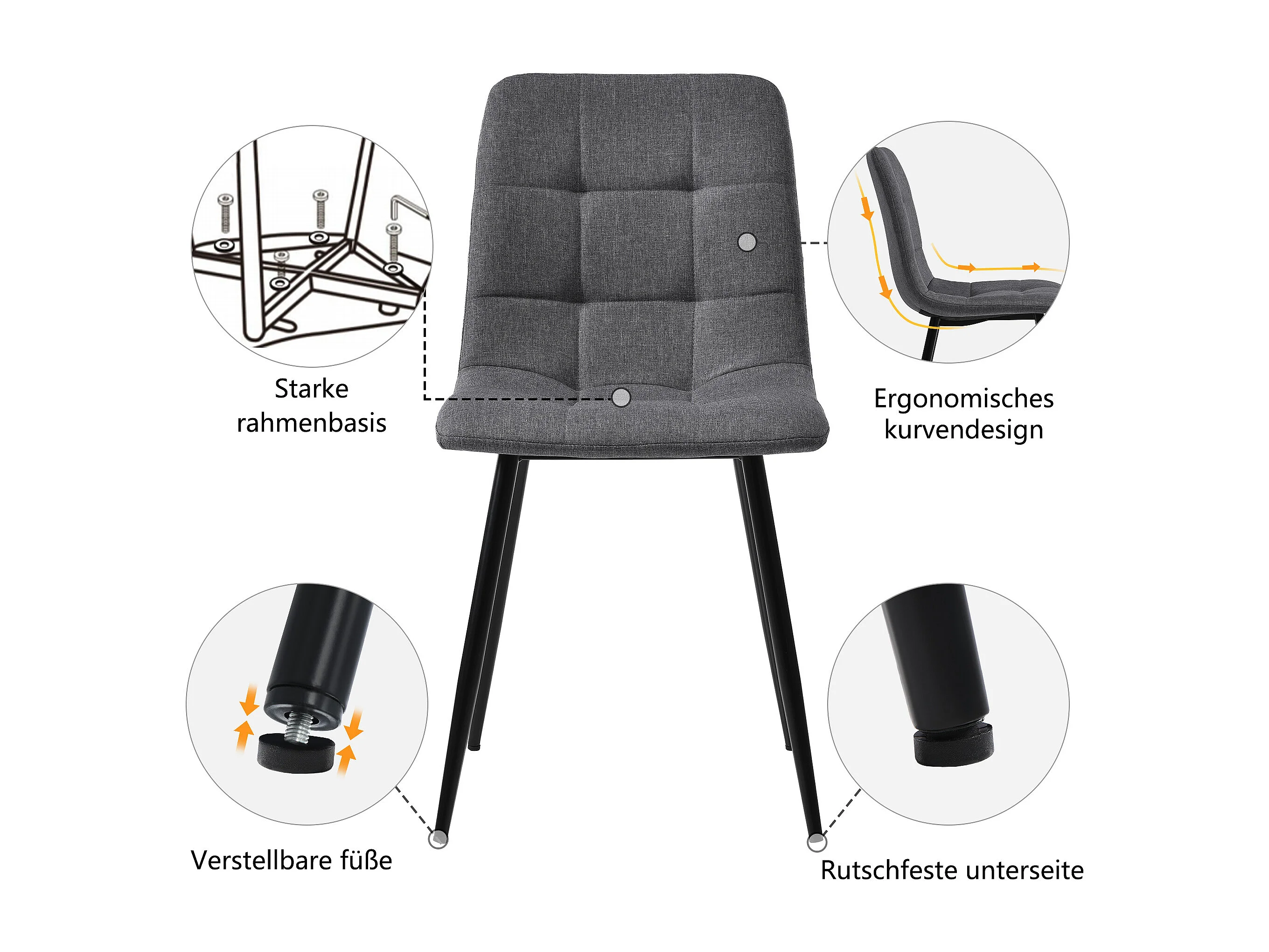 Conjunto de jantar com 5 peças, mesa de 117 x 68 cm, MDF com efeito mármore, pernas de metal, cadeiras, linho cinza