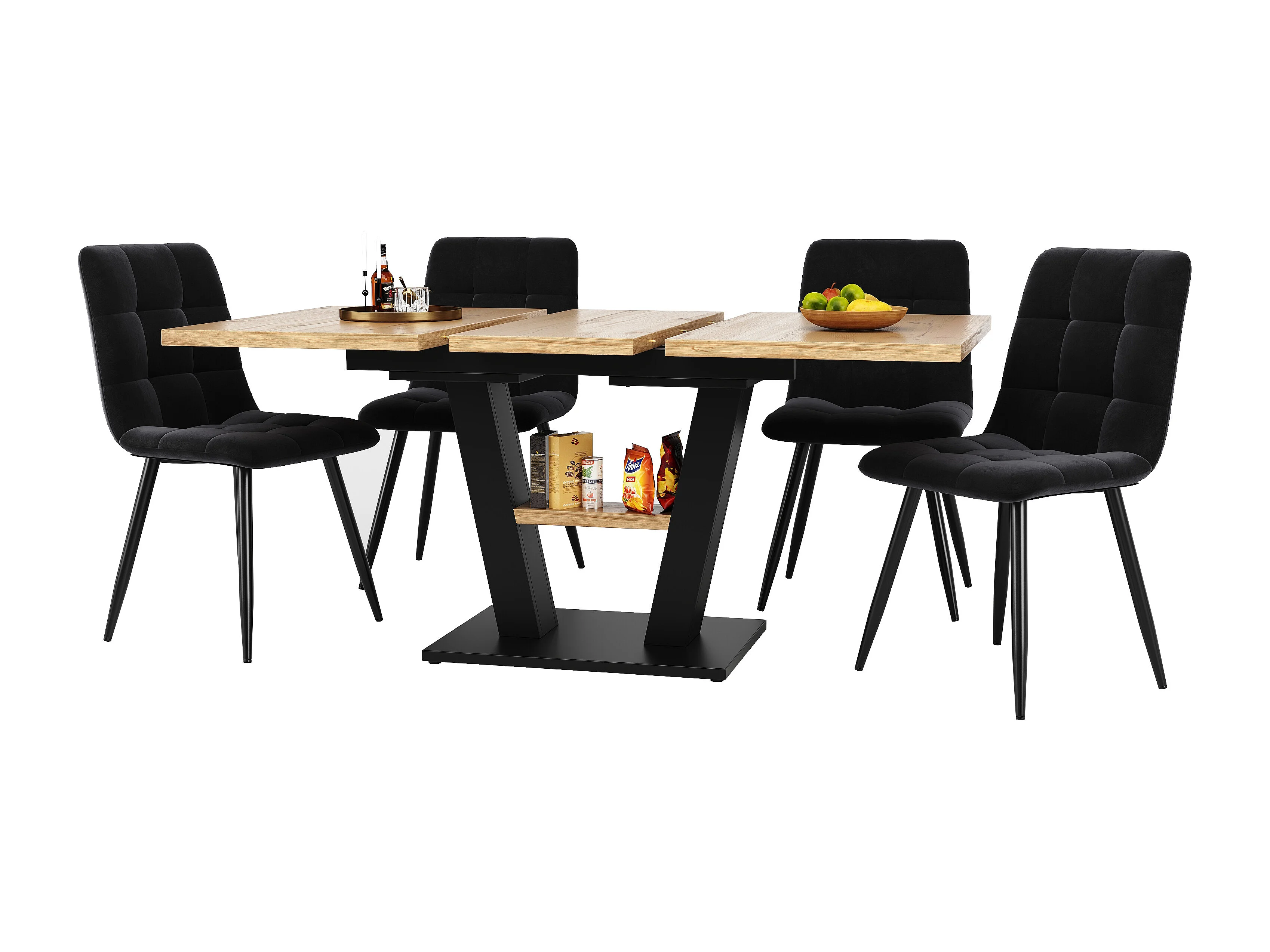 Conjunto de jantar de 5 peças com mesa extensível 118-157 cm MDF + 4 cadeiras de veludo