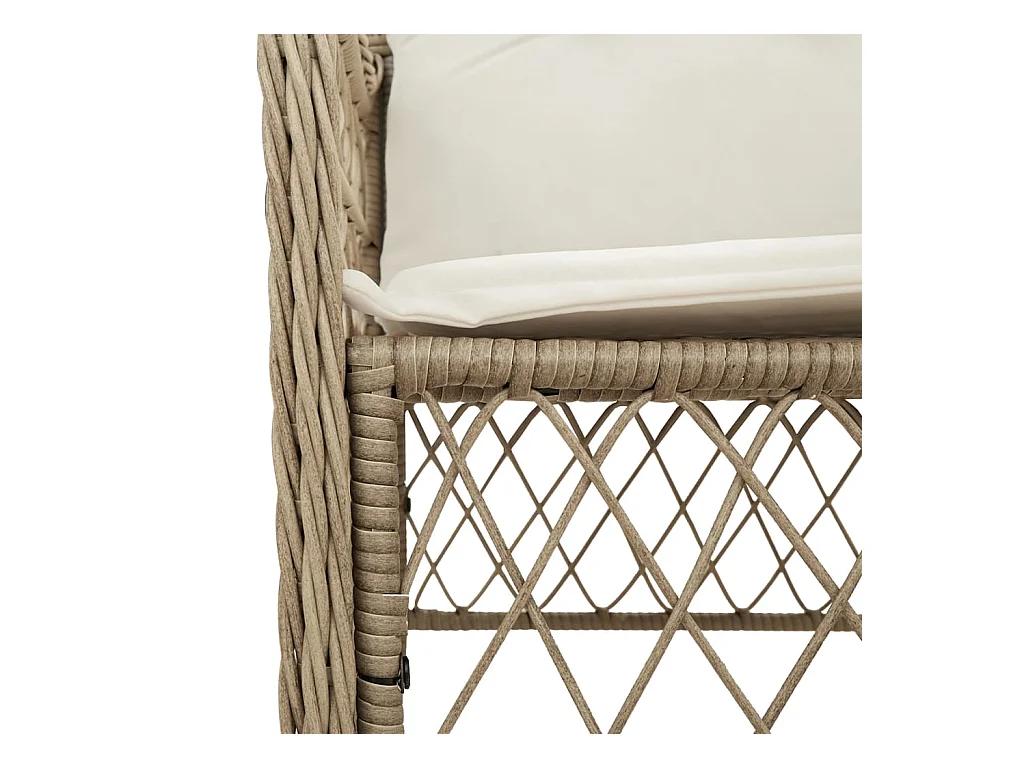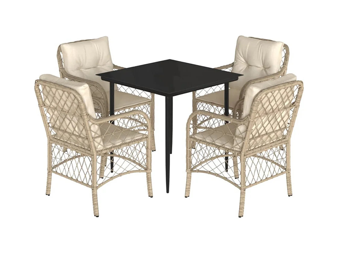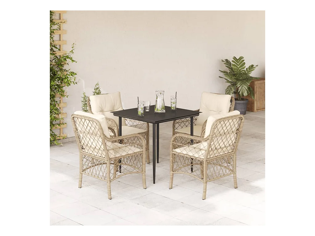 Conjunto de jantar de jardim com almofadas 5 peças bege poli rattan