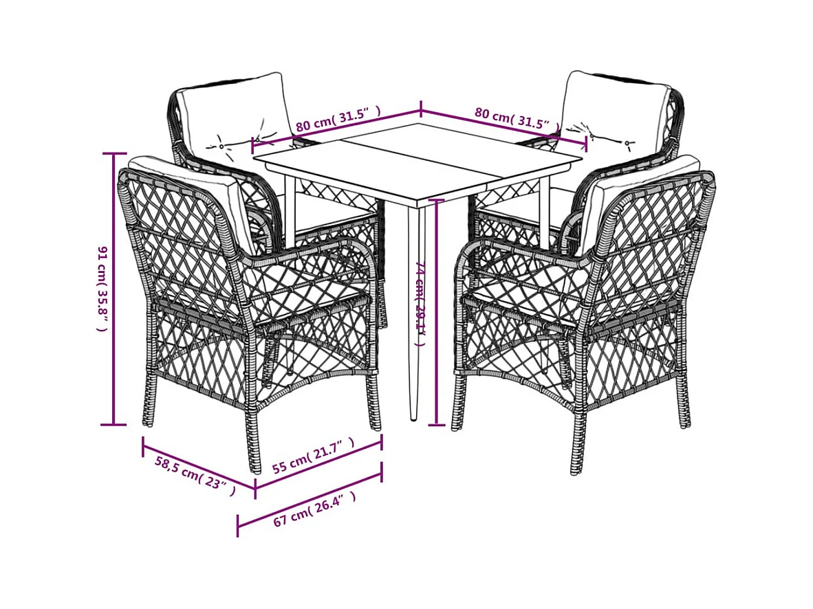 Conjunto de sala de jardim Castanho