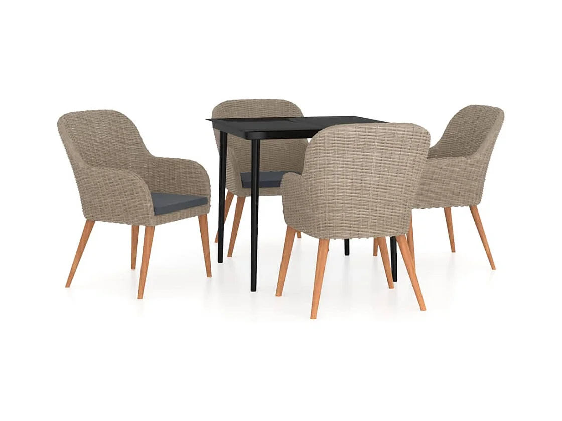 5 peças conjunto de jantar p/ jardim vime PE preto