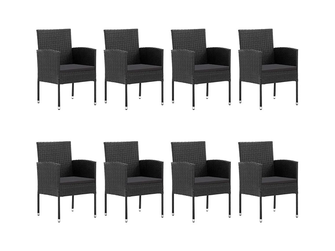 Conjunto de jantar de jardim móveis para área externa com almofadas 9 peças preto 02_0014178