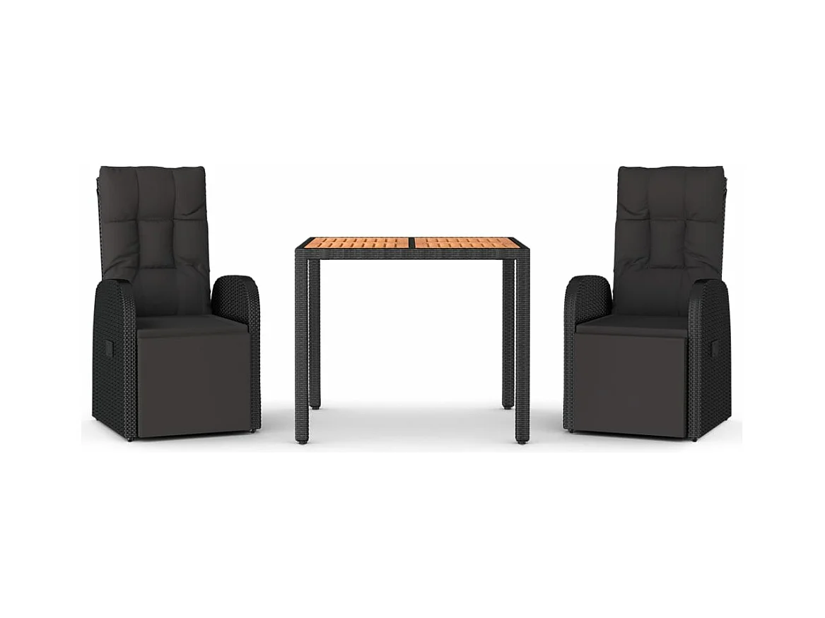 Conjunto de jantar móveis de jardim móveis de exterior 3 peças resina tecida preta e acácia 02_0014264