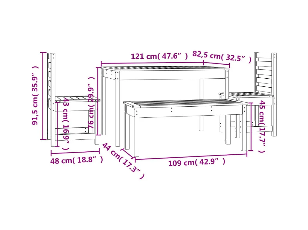 Conjunto de jantar móveis de jardim móveis de exterior 4 peças madeira maciça de pinho 02_0014276