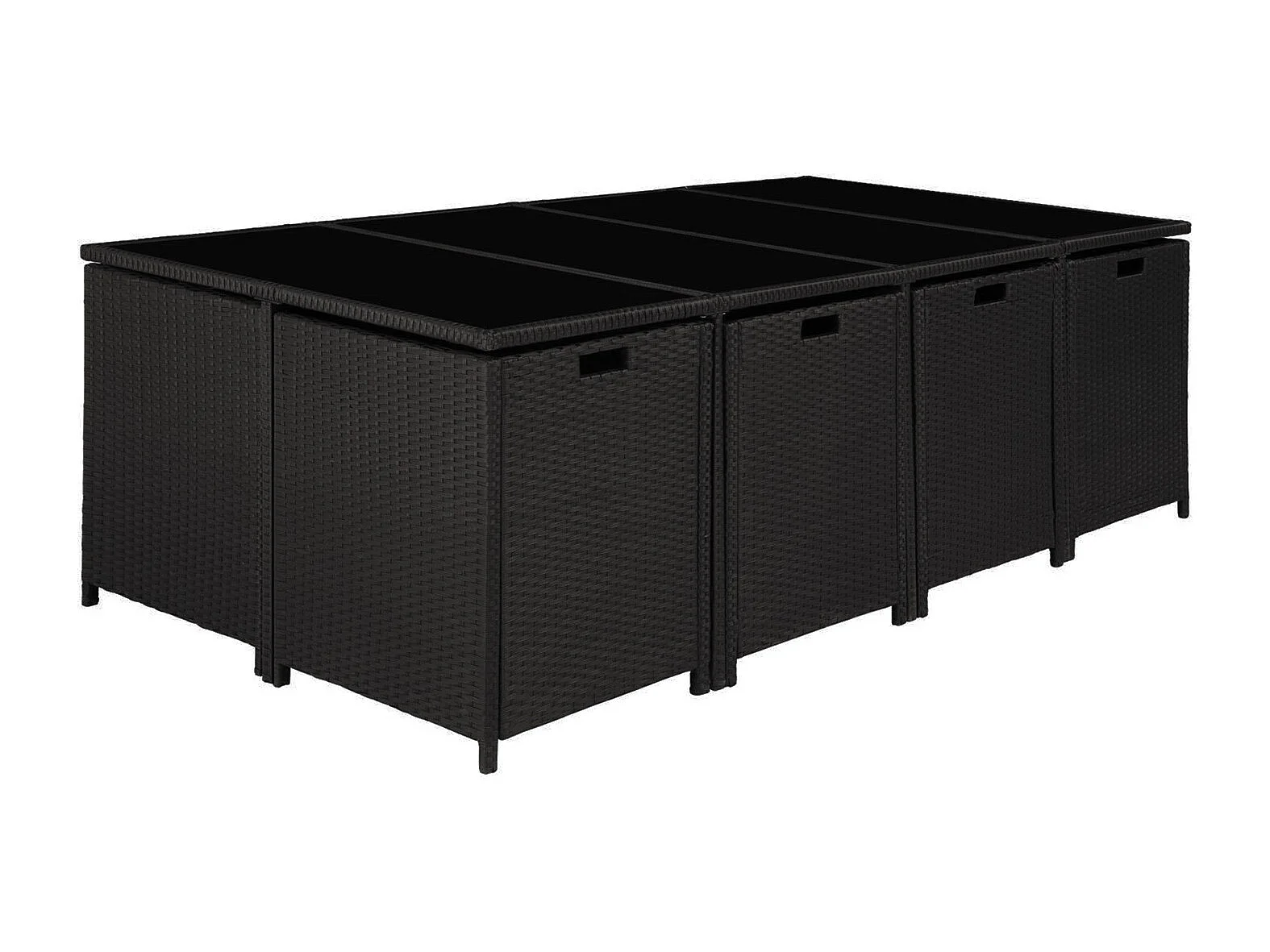 Conjunto de jardim 12 lugares em resina trançada preto/cinza FLORIDA - Design contemporâneo, 12 lugares, encaixável, almofadas removíveis