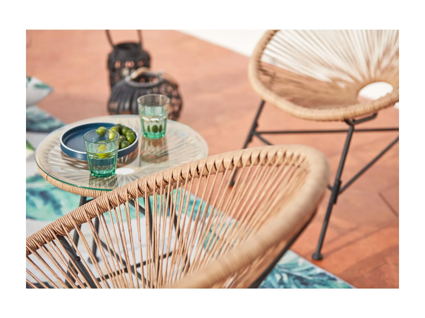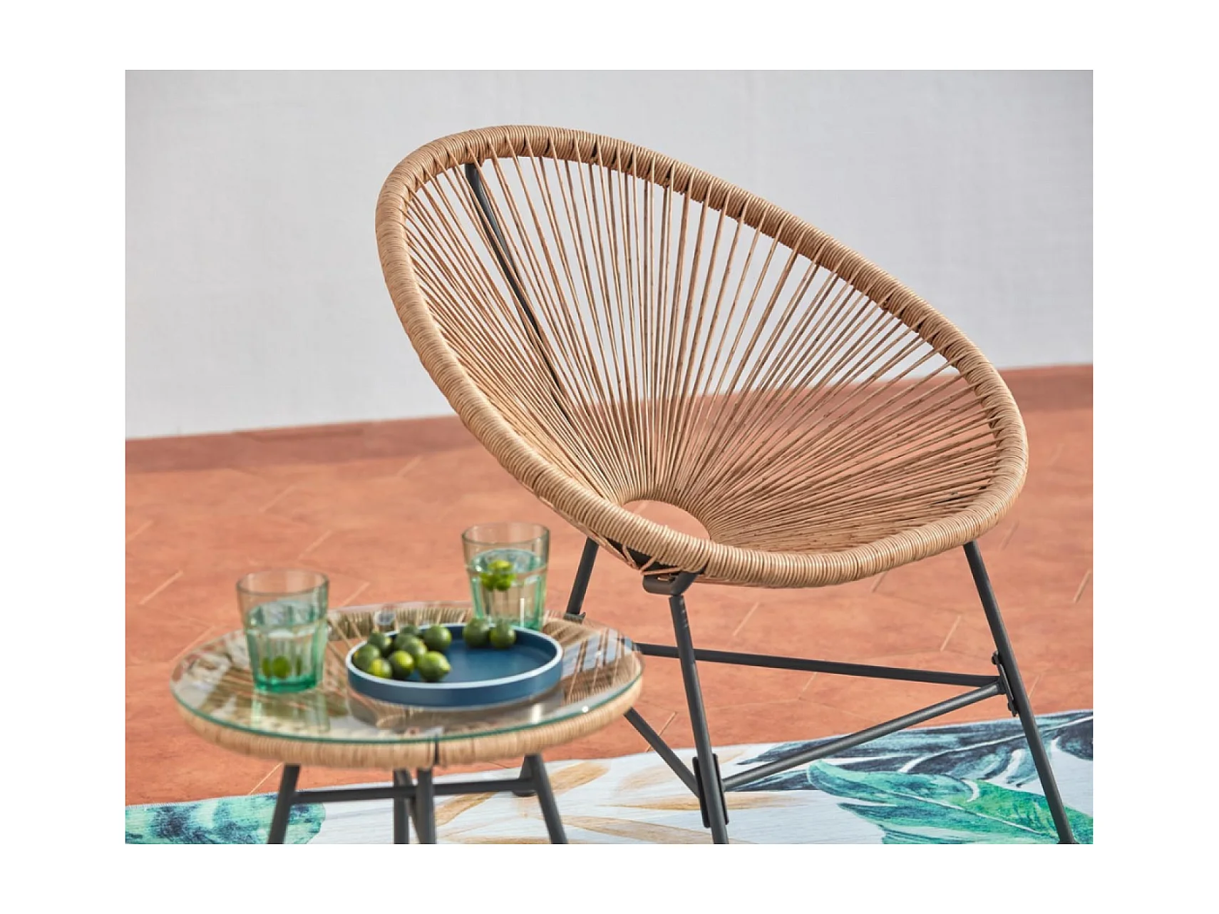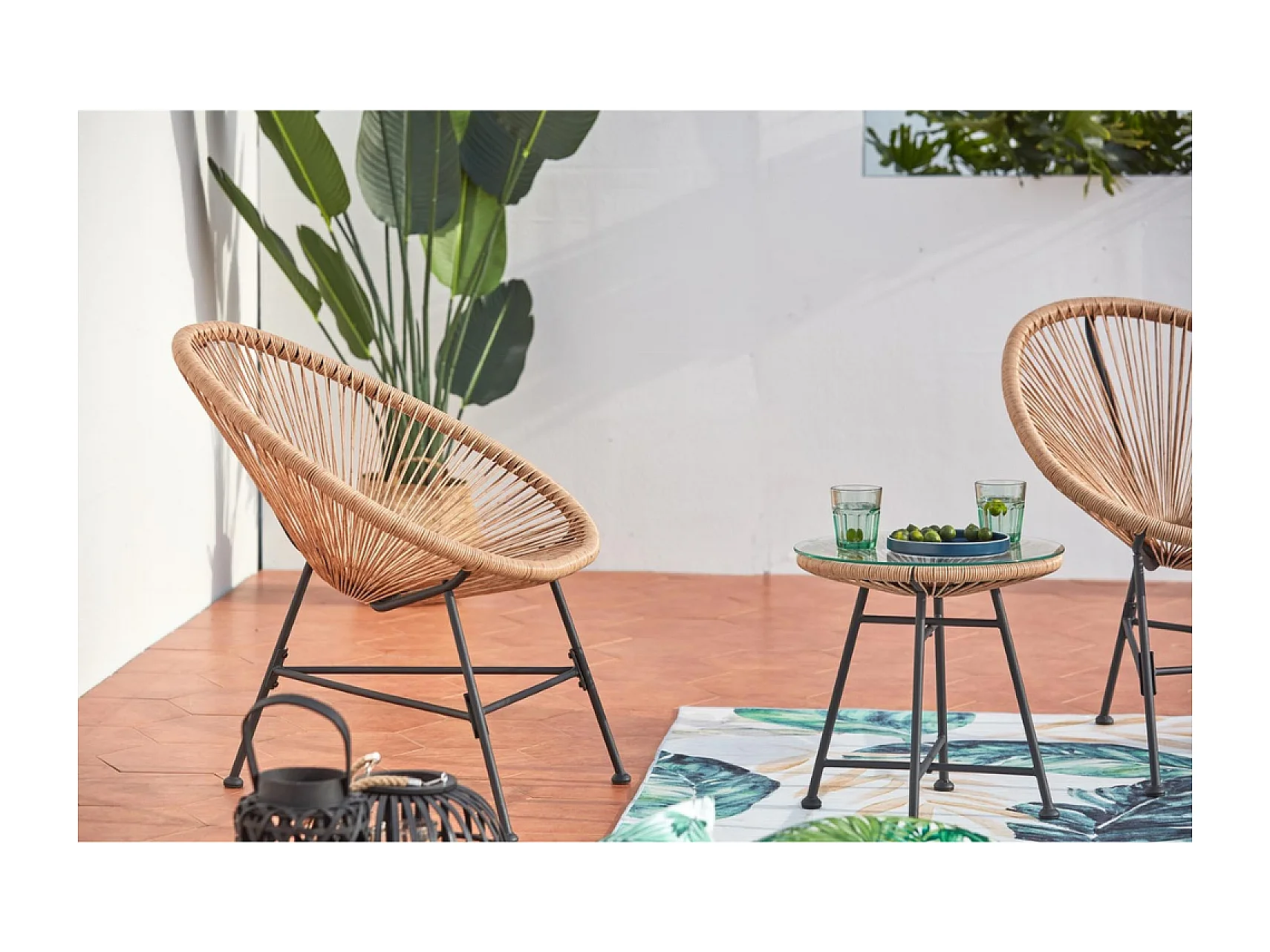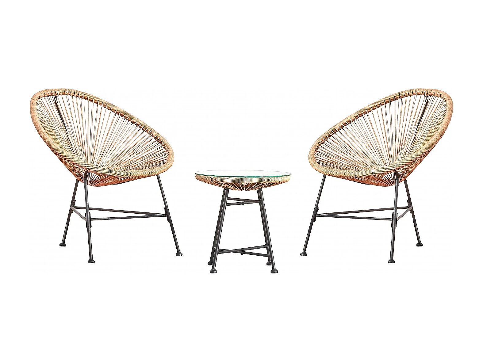 Conjunto de jardim Acapulco 2 lugares natural com mesa - Design icónico dos anos 50