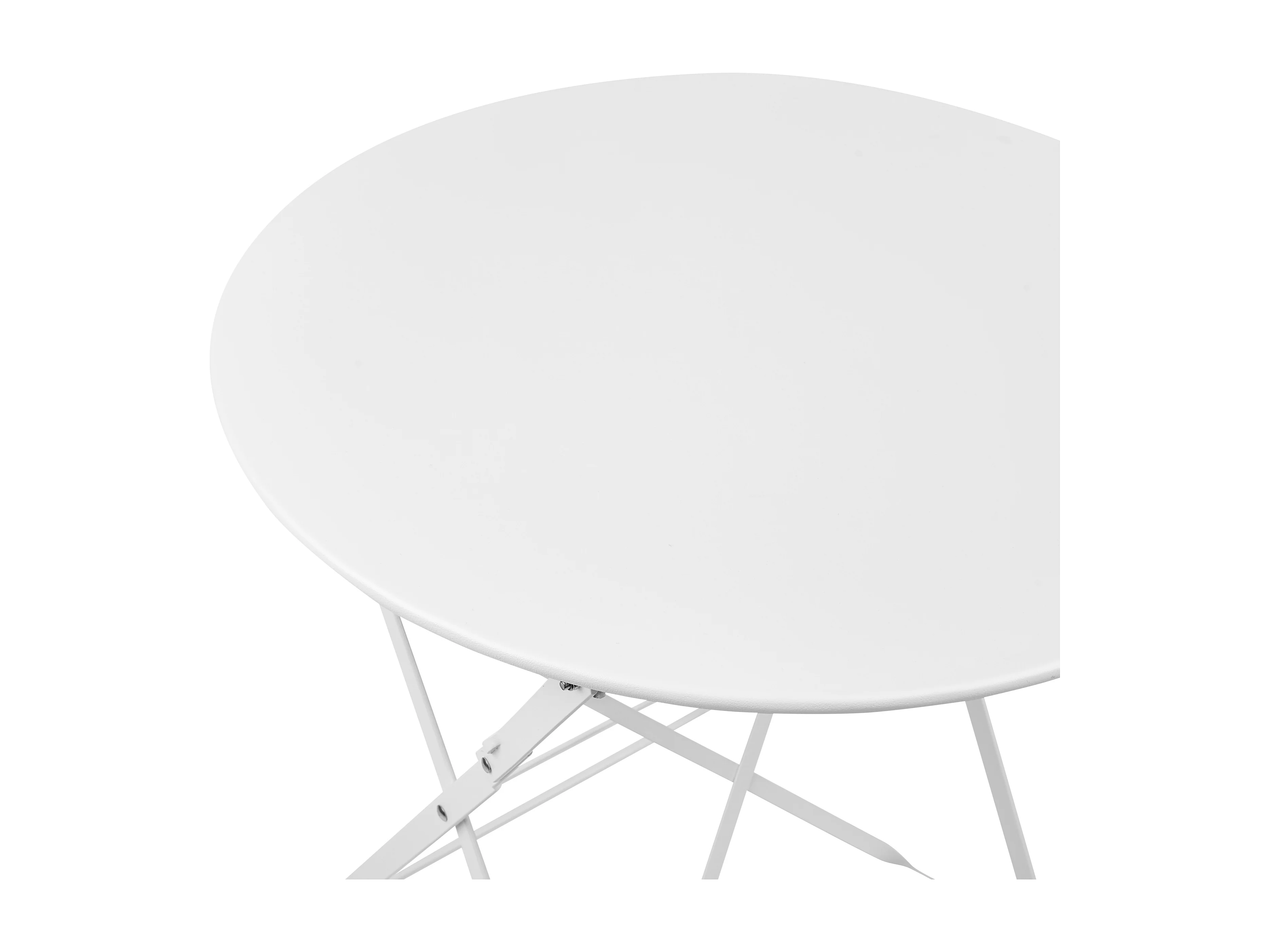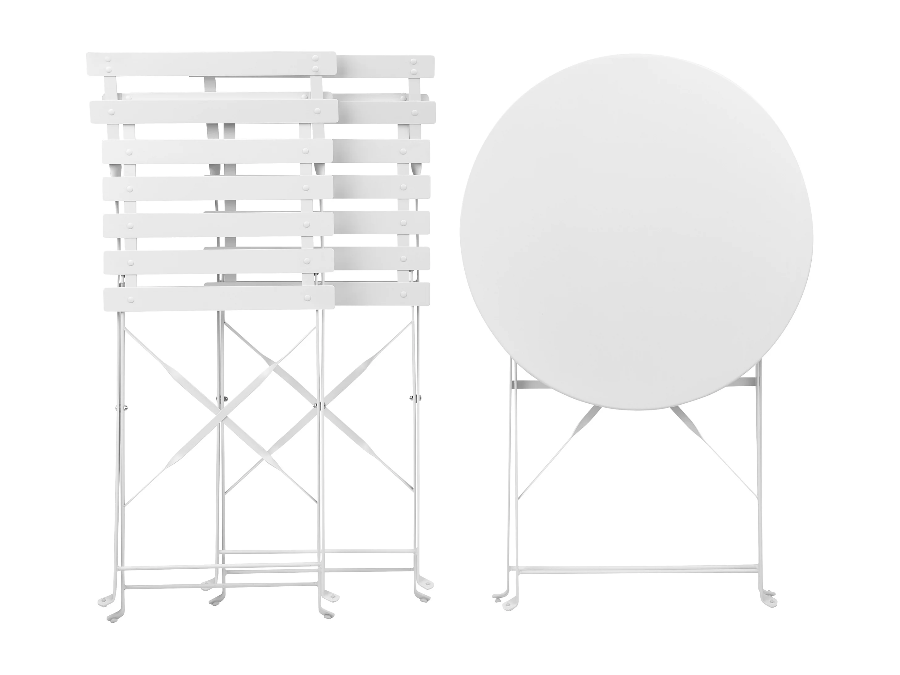 Conjunto de jardim dobrável em metal estilo ferro forjado - uma mesa D.60 cm e 2 cadeiras - Branco - GUERMANTES de MYLIA