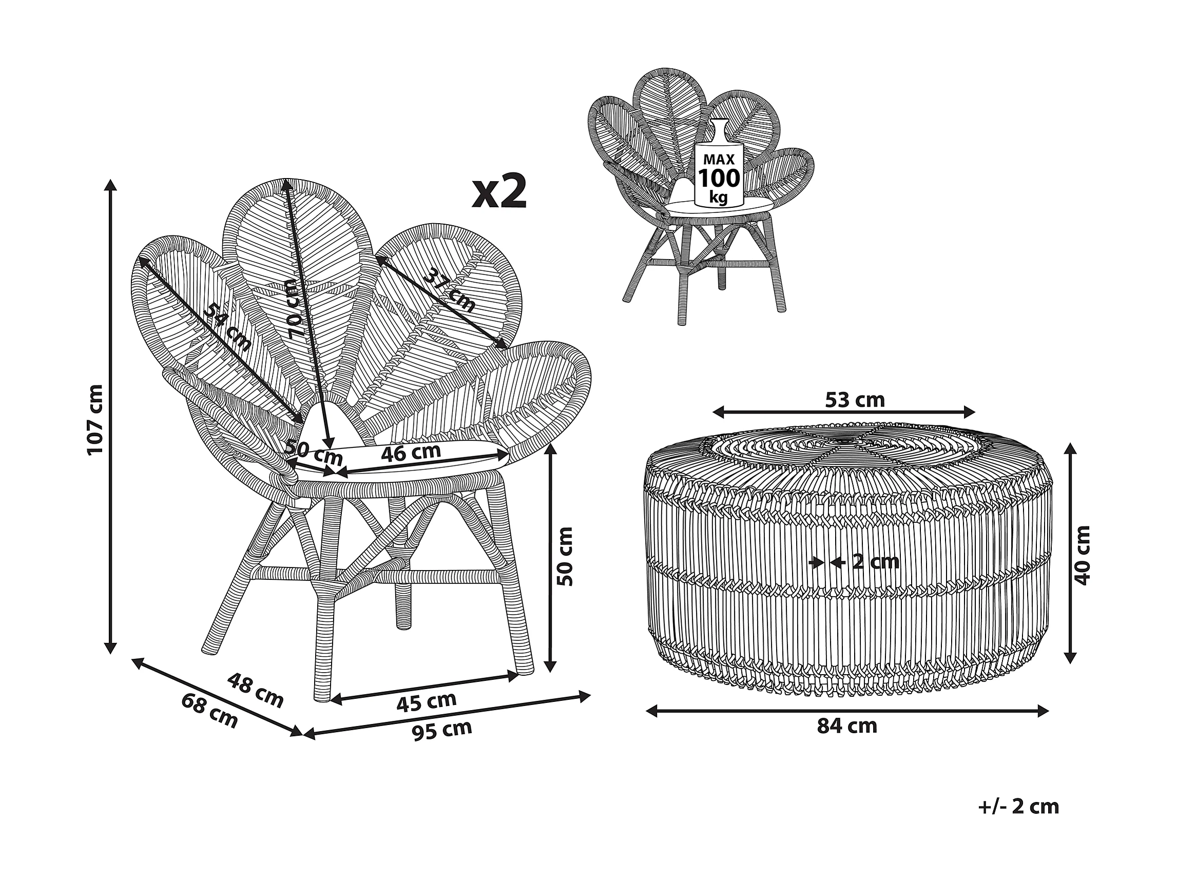 Conjunto de varanda com almofadas FLORENTINE / LIMNI Rattan Creme