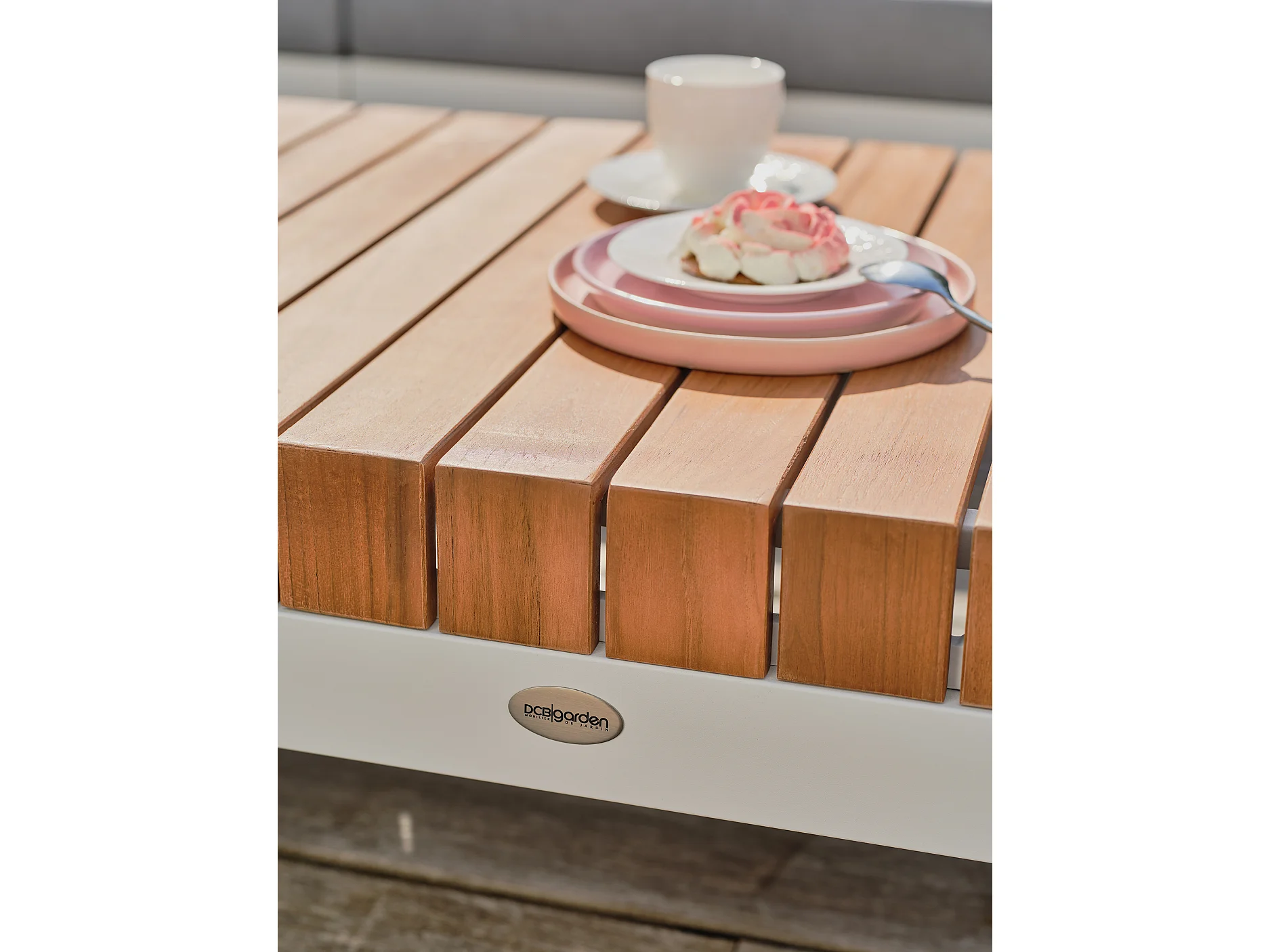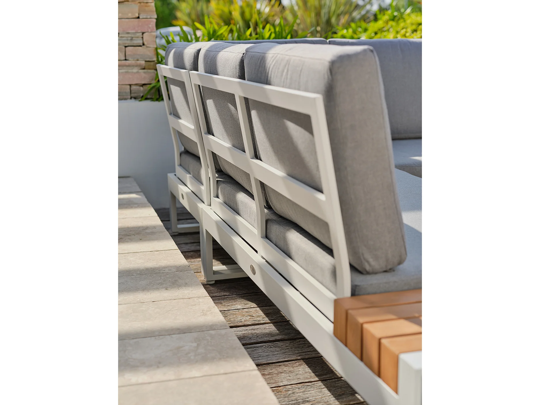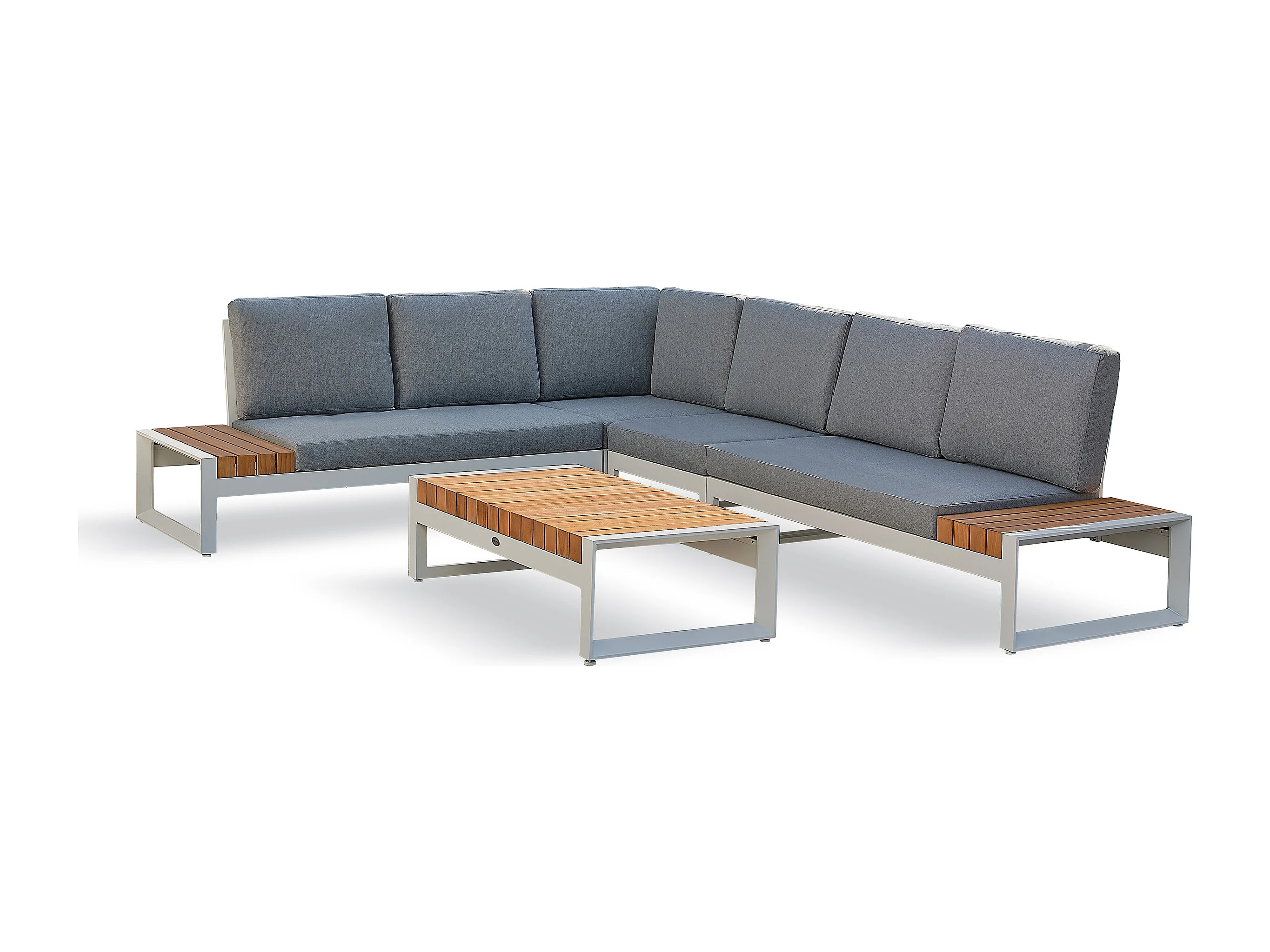 Conjunto de mobiliário de jardim de canto de 6 lugares em teca e alumínio