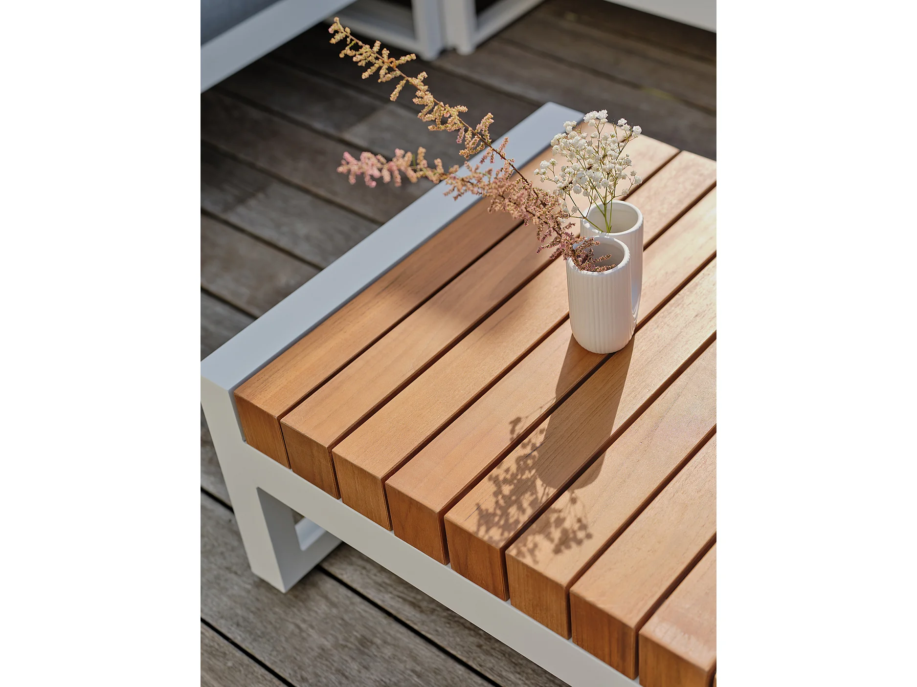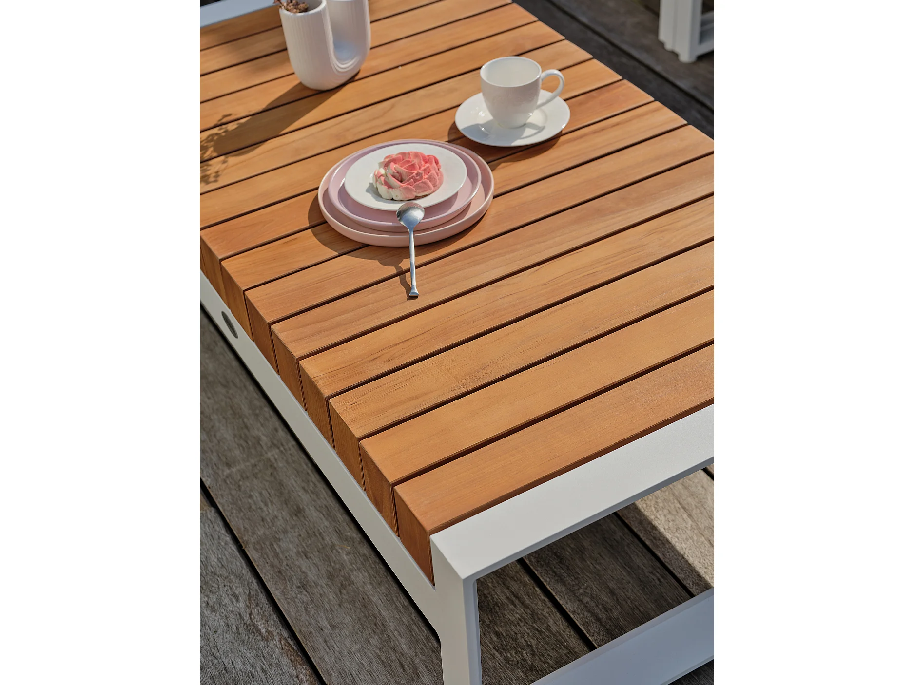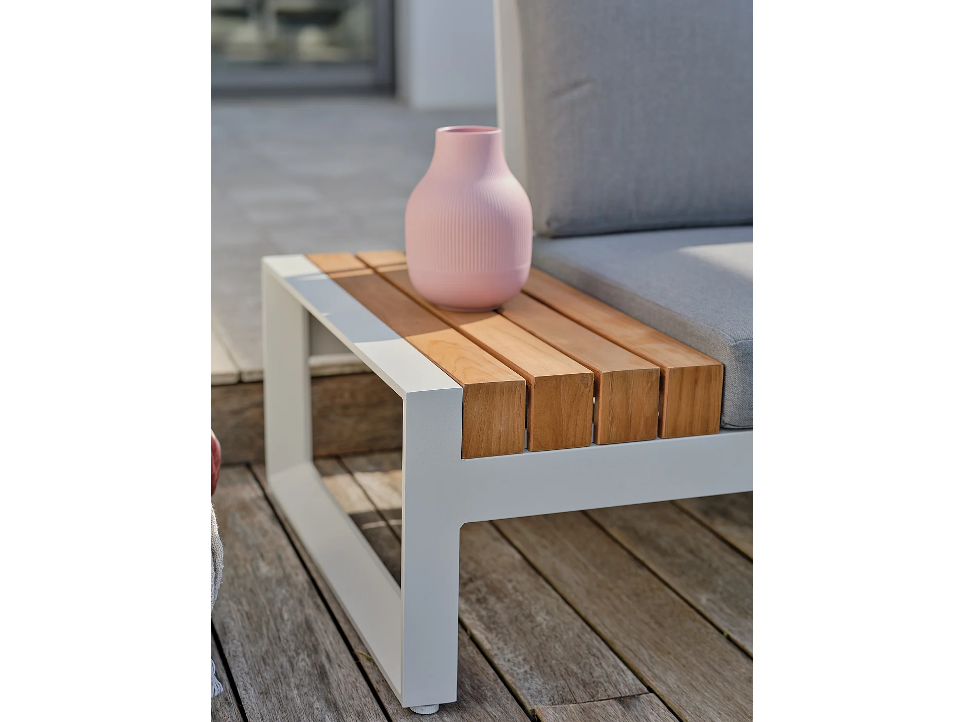 Conjunto de mobiliário de jardim de canto de 6 lugares em teca e alumínio