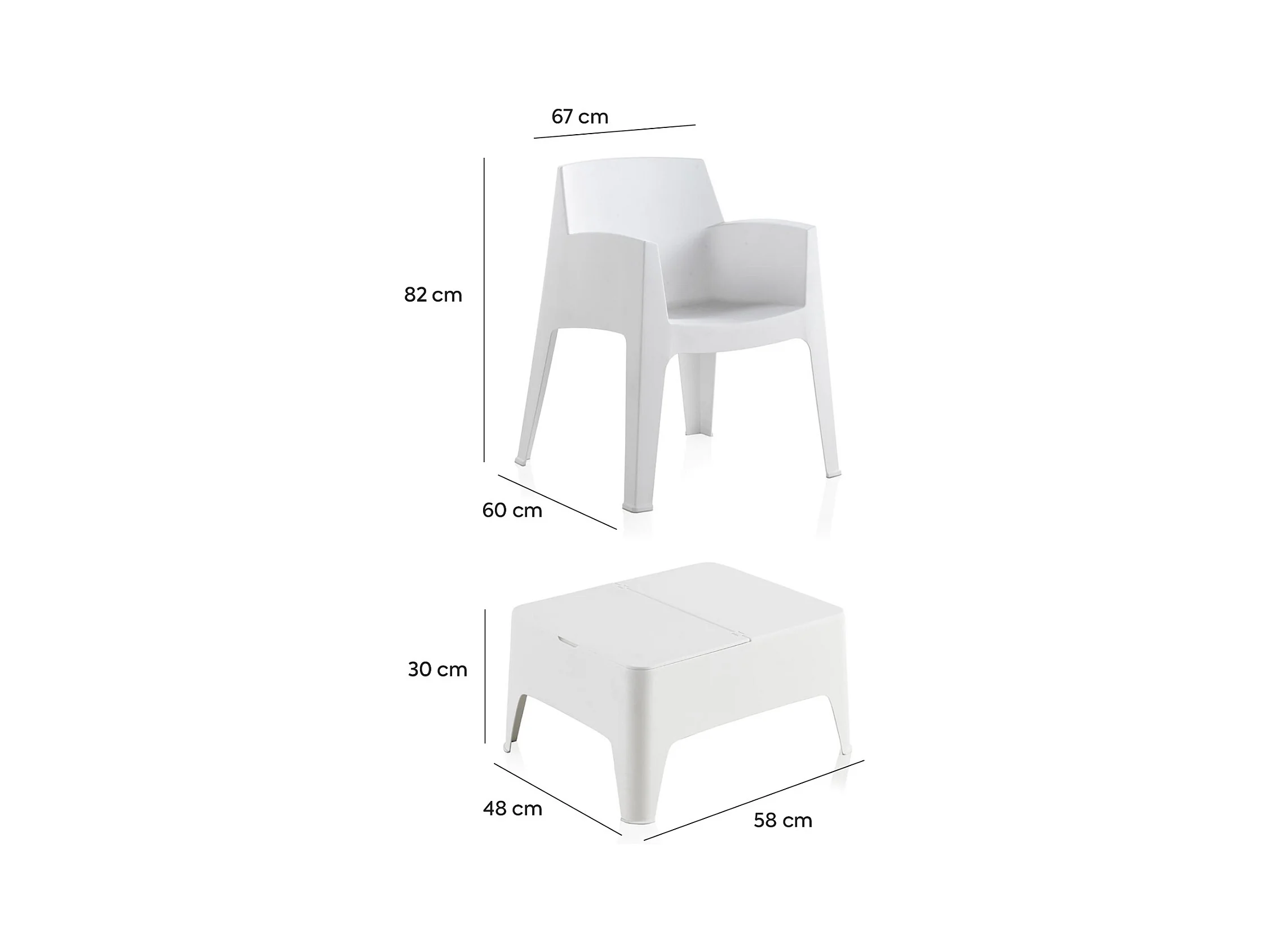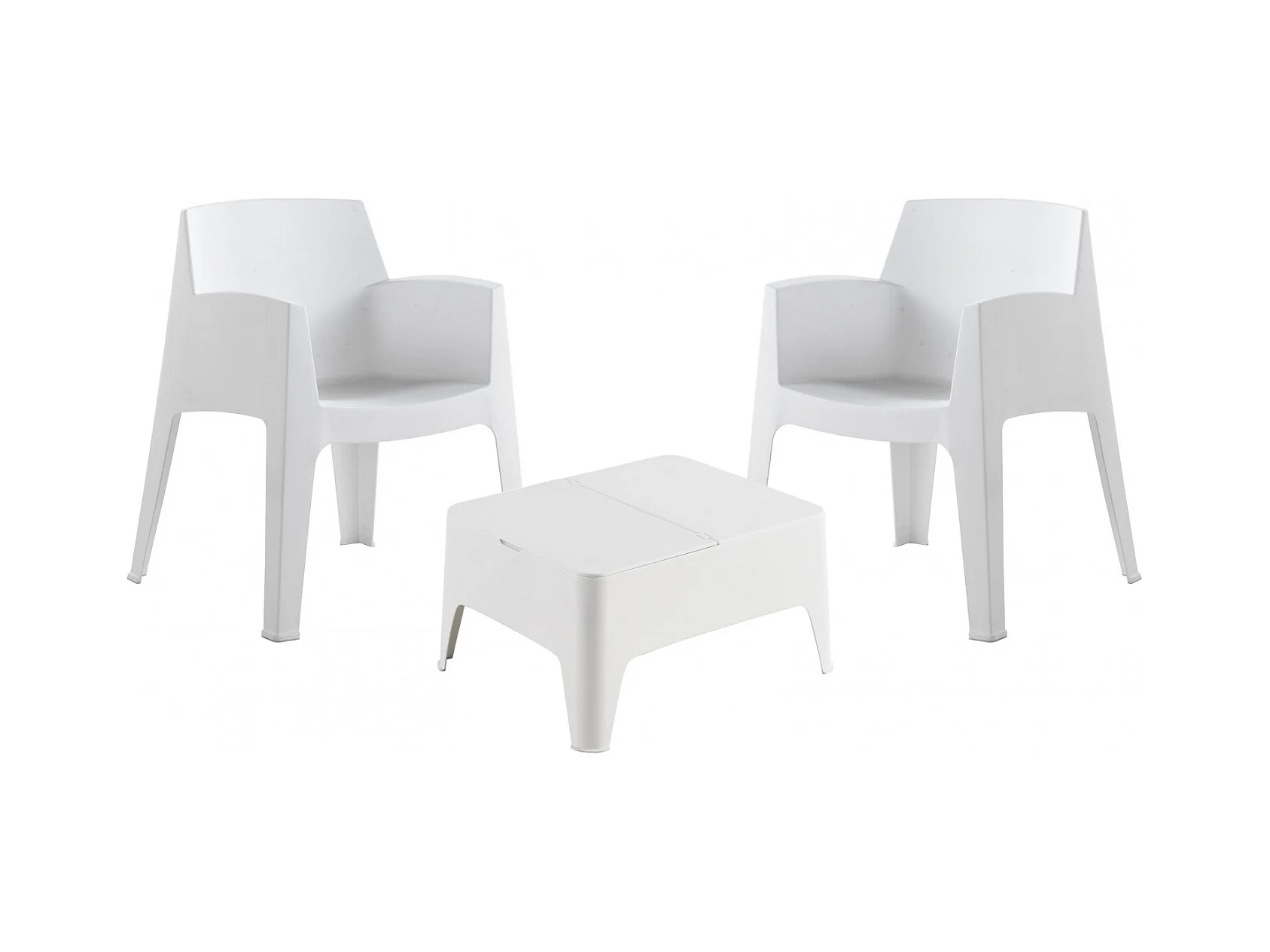 Conjunto de Jardim e Terraço Sp Berner Costa com 2 Cadeiras e 1 Mesa de Centro em Resina Branca