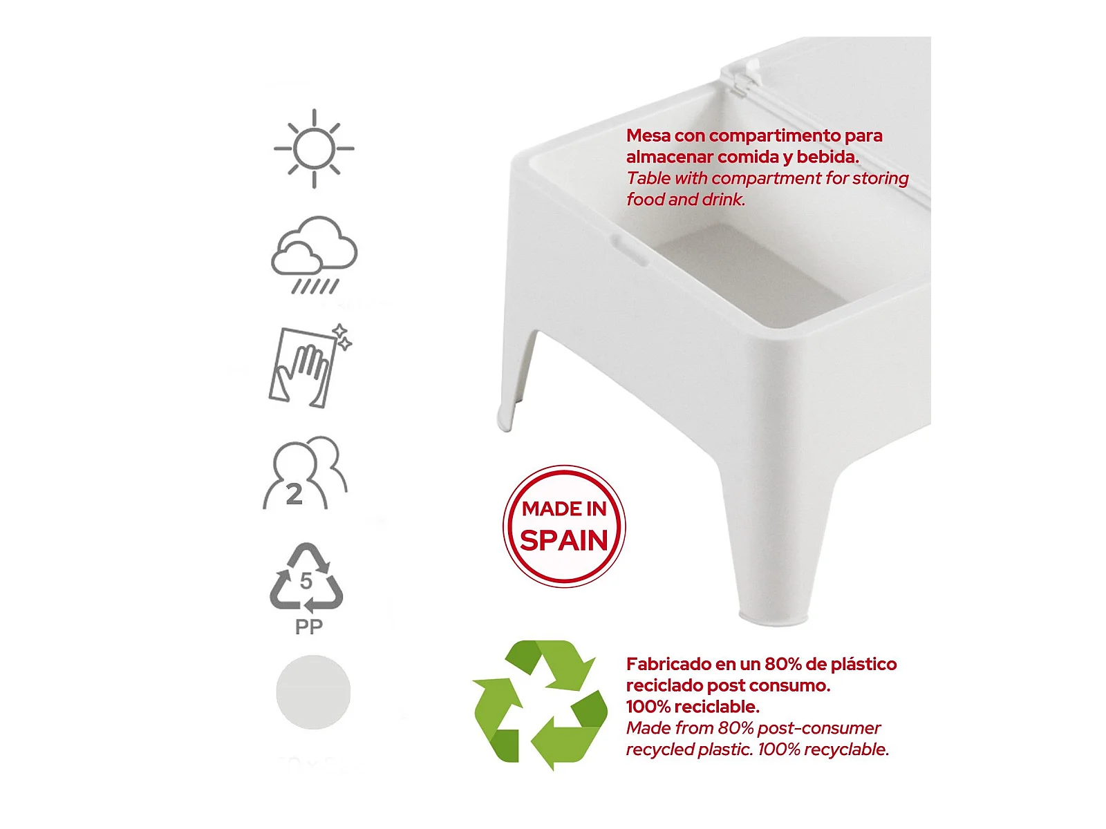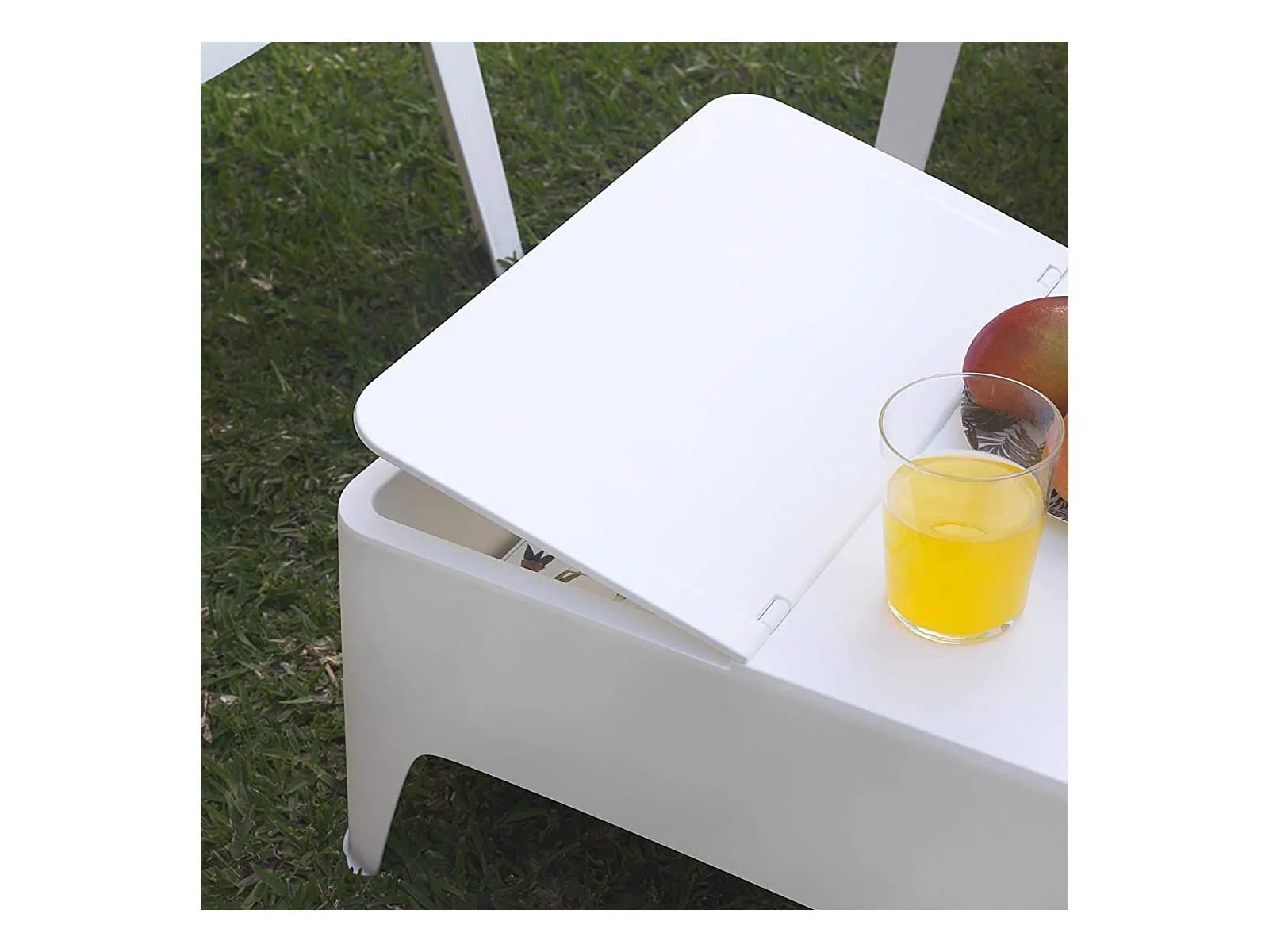 Conjunto lounge externo Dkabash, conjunto de jardim com 1 mesa quadrada e 2 bancos, conjunto interno e externo da Pic Nic, 100% fabricado na Itália, branco