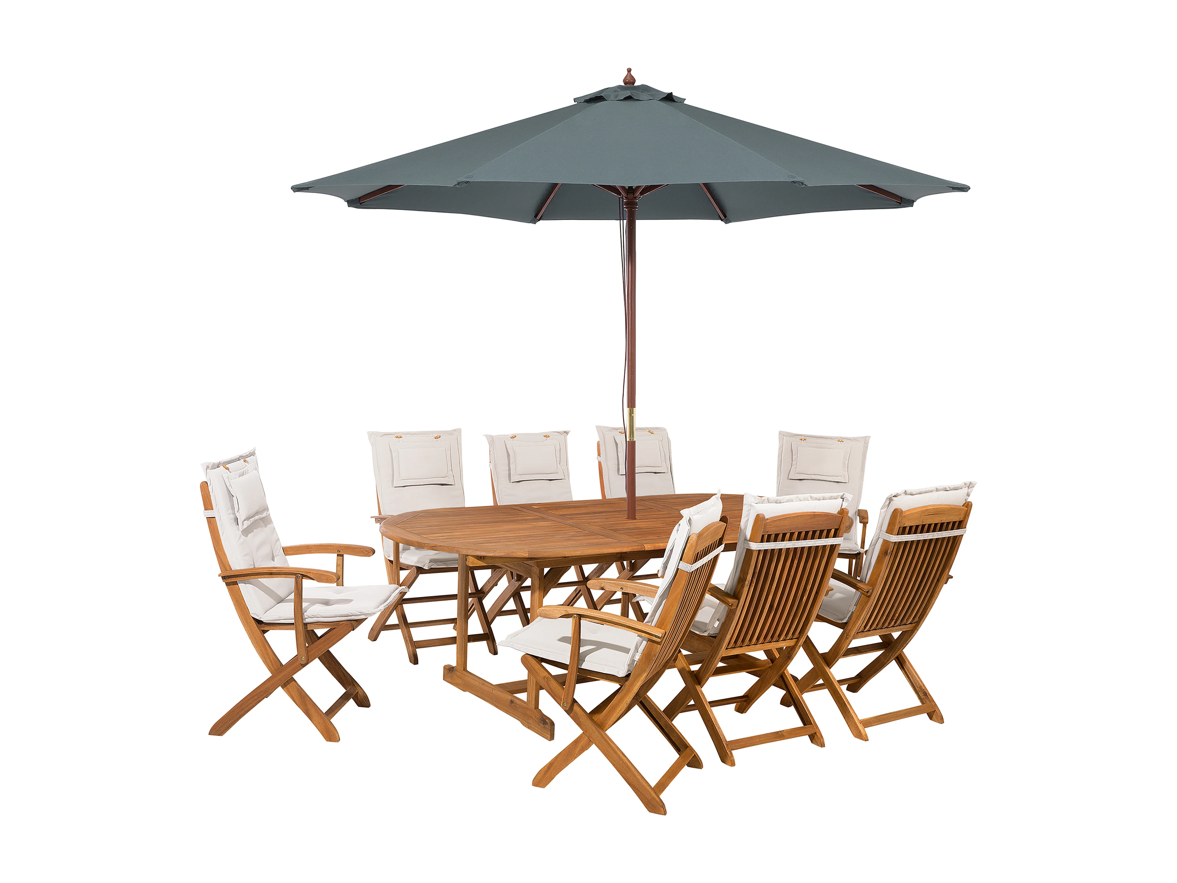 Conjunto de refeições de jardim 8 lugares MAUI com guarda-sol Madeira de acácia Branco creme