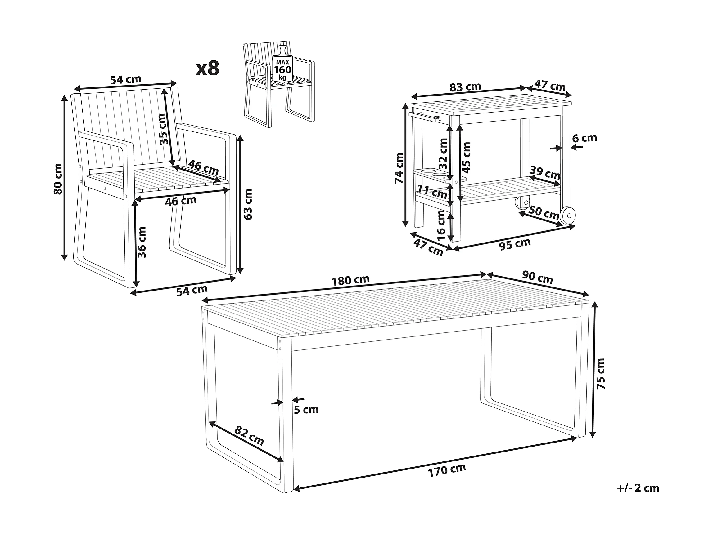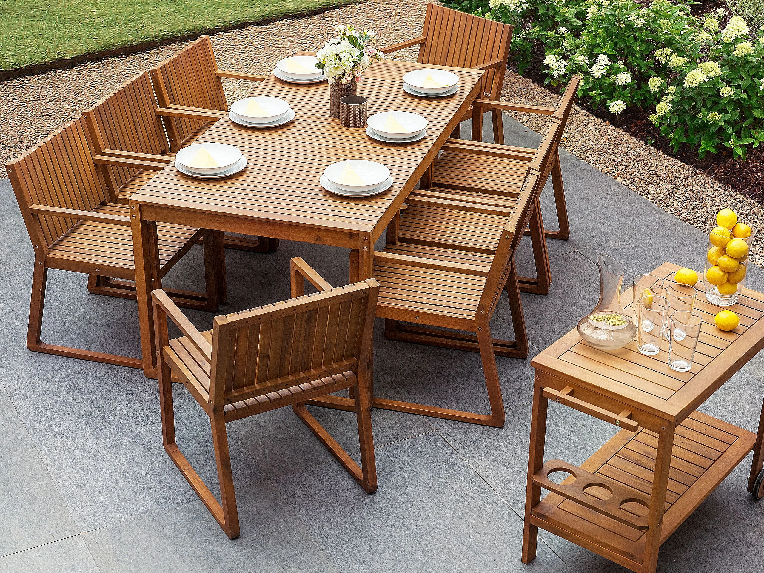 Conjunto de refeições de jardim com carrinho de cozinha 8 lugares SASSARI Madeira de acácia Castanho
