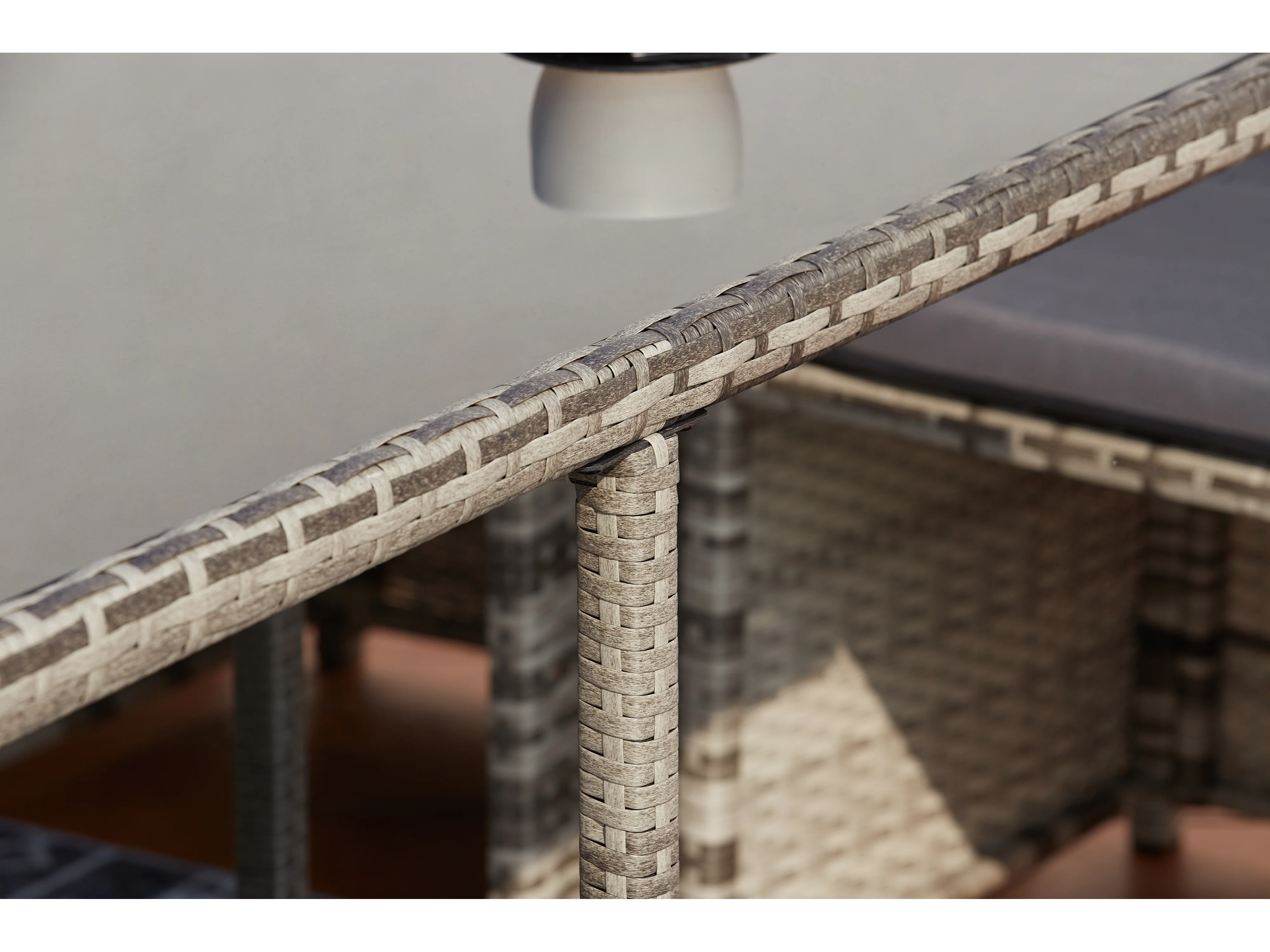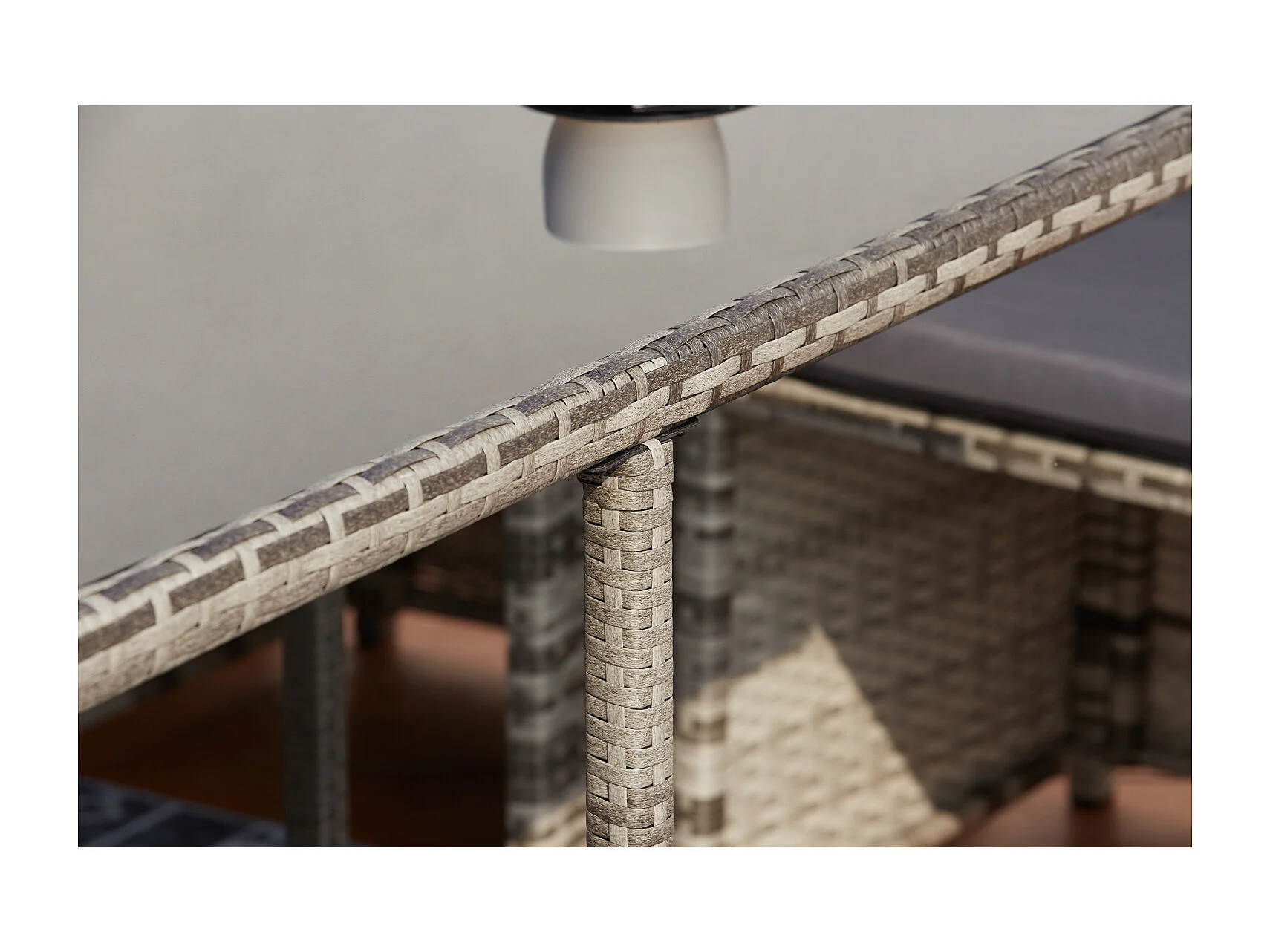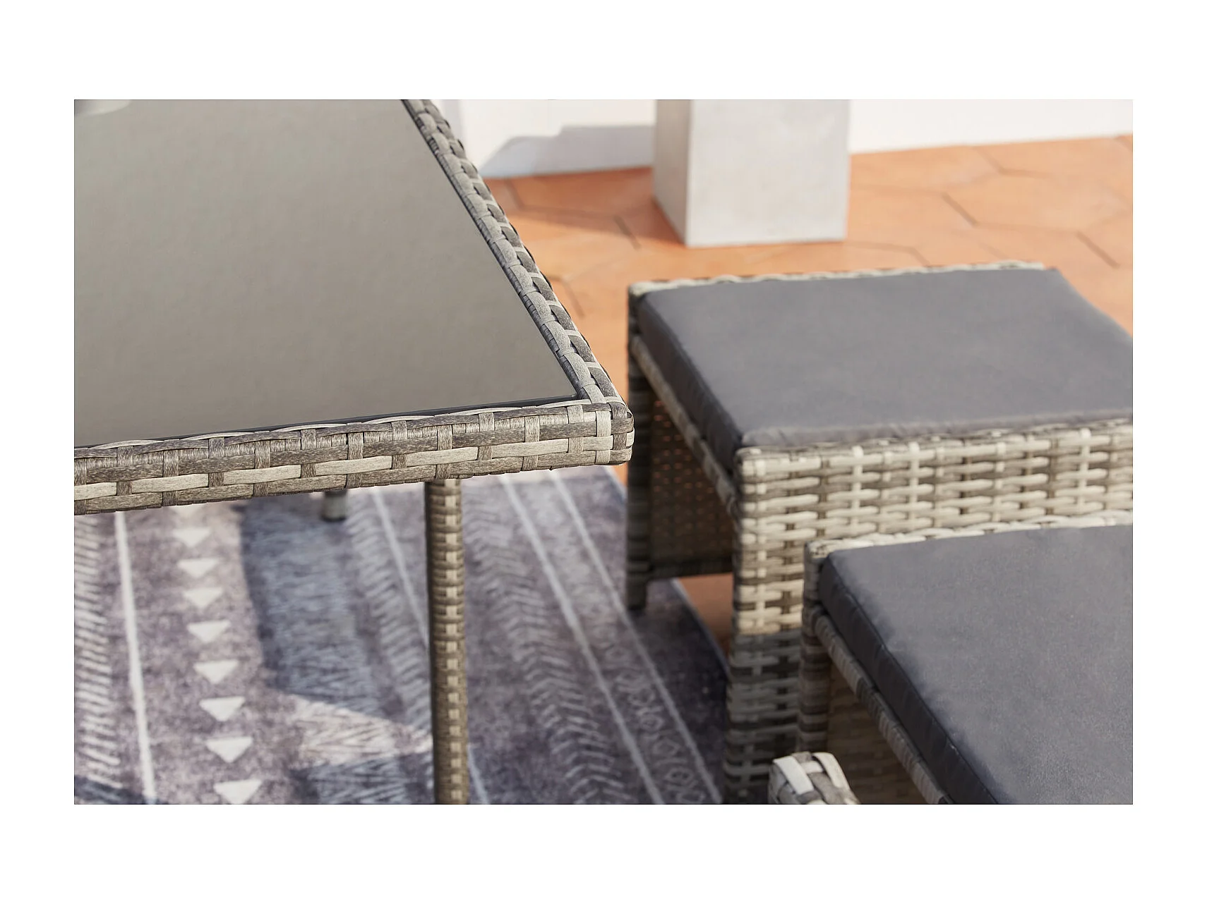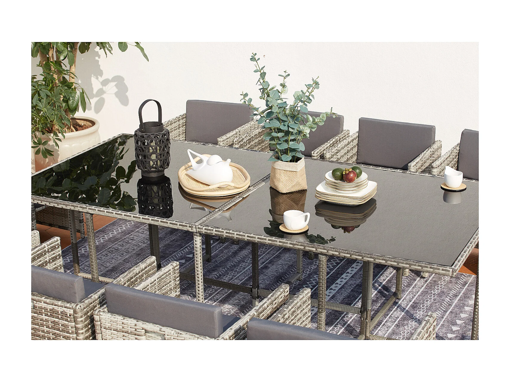 Conjunto de jardim em vime cinza MIAMI para 12 pessoas - Mesa, cadeiras e pufes - Exterior e interior